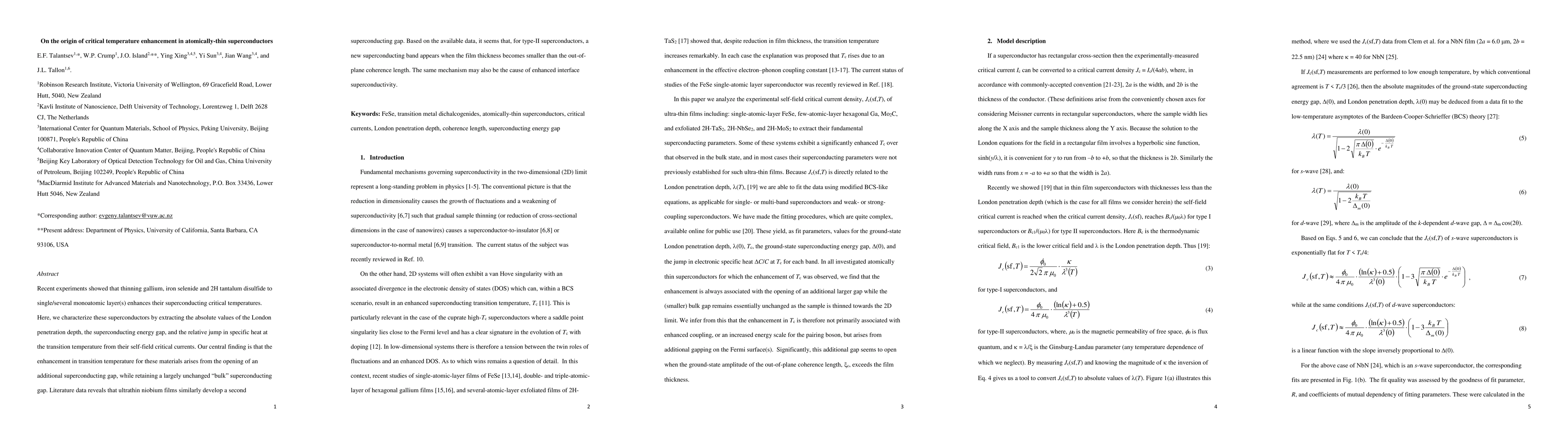 Research finds that thinning certain superconductors to single layers enhances their critical temperatures due to an additional superconducting gap opening up, while retaining the bulk gap. This phenomenon may be applicable to type-II superconductors as well.