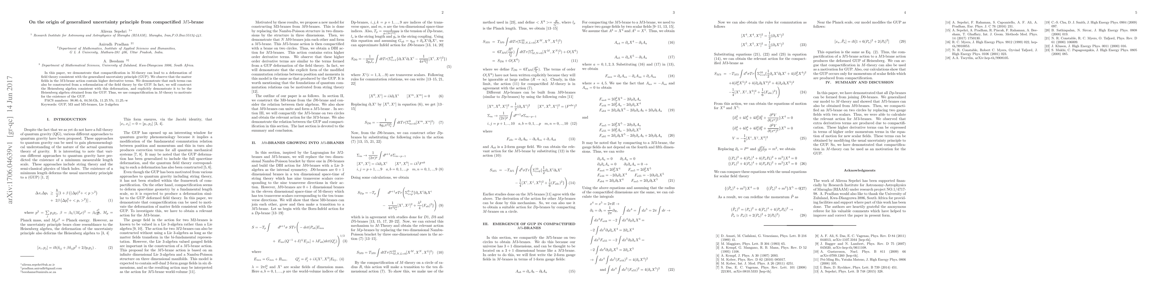 In this paper, we demonstrate that compactification in M-theory can lead to a deformation of field theory consistent with the generalized uncertainty principle (GUP).We observe that the matter fields in the M3-brane action contain higher derivative terms. We demonstrate that such terms can also be constructed from a reformulation of the field theory by the GUP. In fact, we will construct the Heisenberg algebra consistent with this deformation, and explicitly demonstrate it to be the Heisenberg algebra obtained from the GUP. Thus, we use compactification in M-theory to motivate for the existence of the GUP.