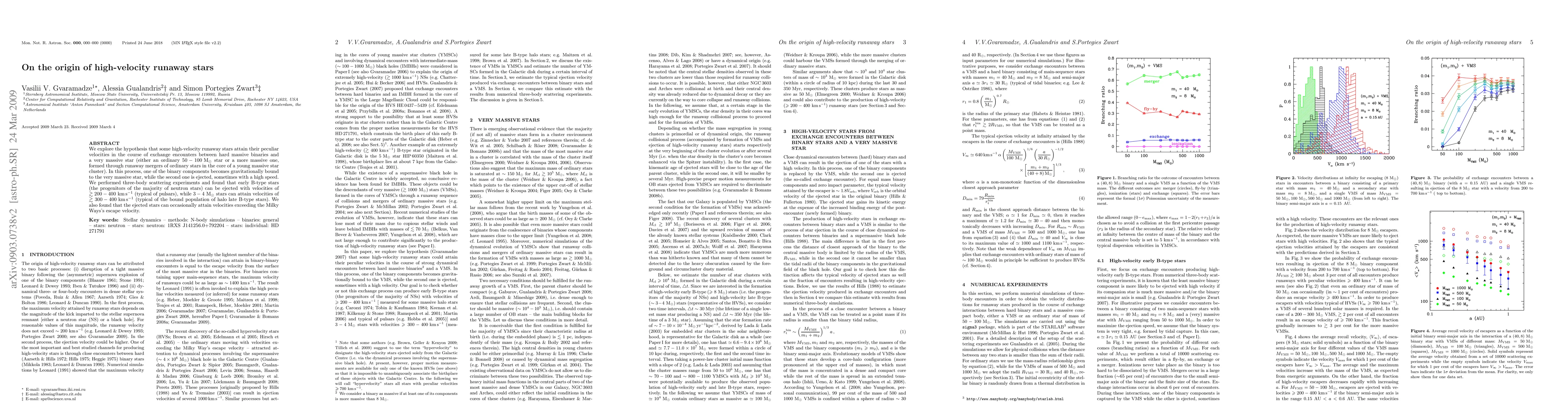 The paper presents detailed numerical simulations of three-body encounters, providing a comprehensive analysis of the ejection velocities of stars resulting from exchanges with VMSs or ordinary massive stars.