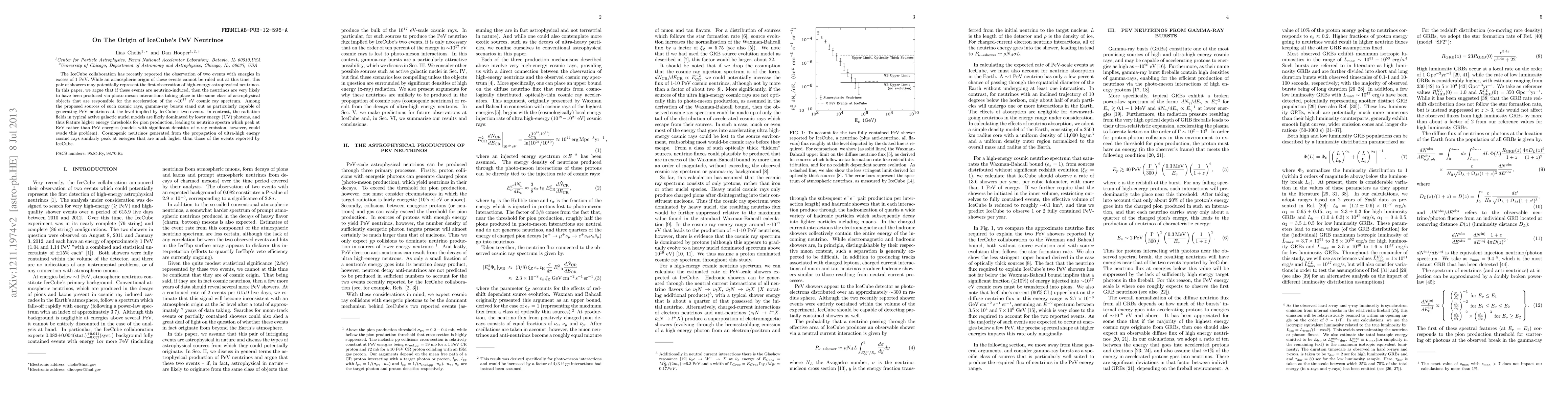 The IceCube collaboration has recently reported the observation of two events with energies in excess of 1 PeV. While an atmospheric origin of these events cannot be ruled out at this time, this pair of showers may potentially represent the first observation of high-energy astrophysical neutrinos. In this paper, we argue that if these events are neutrino-induced, then the neutrinos are very likely to have been produced via photo-meson interactions taking place in the same class of astrophysical objects that are responsible for the acceleration of the $\sim$$10^{17}$ eV cosmic ray spectrum. Among the proposed sources of such cosmic rays, gamma-ray bursts stand out as particularly capable of generating PeV neutrinos at the level implied by IceCube's two events. In contrast, the radiation fields in typical active galactic nuclei models are likely dominated by lower energy (UV) photons, and thus feature higher energy thresholds for pion production, leading to neutrino spectra which peak at EeV rather than PeV energies (models with significant densities of x-ray emission, however, could evade this problem). Cosmogenic neutrinos generated from the propagation of ultra-high energy cosmic rays similarly peak at energies that are much higher than those of the events reported by IceCube.