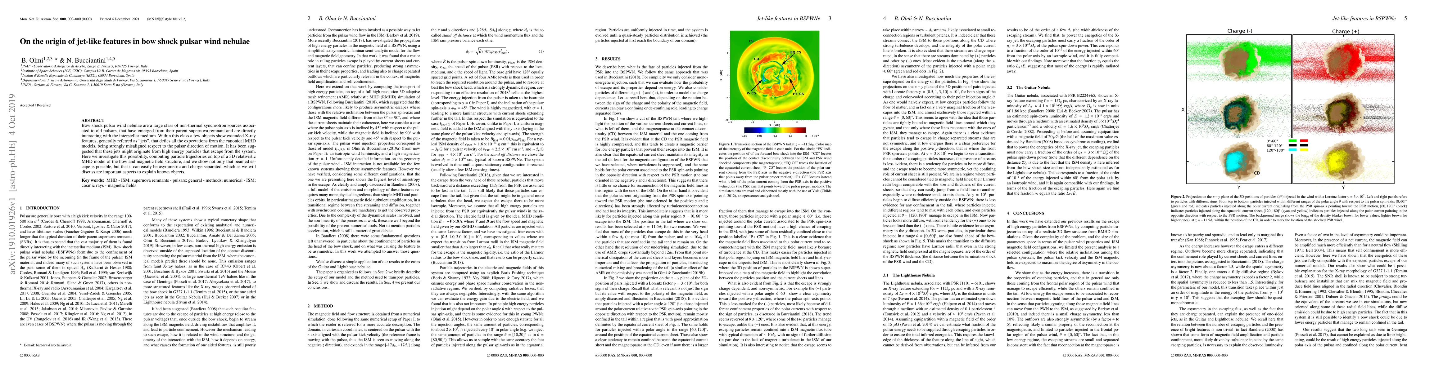 Bow shock pulsar wind nebulae are a large class of non-thermal synchrotron sources associated to old pulsars, that have emerged from their parent supernova remnant and are directly interacting with the interstellar medium. Within this class a few objects show extended X-ray features, generally referred as "jets", that defies all the expectations from the canonical MHD models, being strongly misaligned respect to the pulsar direction of motion. It has been suggested that these jets might originate from high energy particles that escape from the system. Here we investigate this possibility, computing particle trajectories on top of a 3D relativistic MHD model of the flow and magnetic field structure, and we show not only that beamed escape is possible, but that it can easily be asymmetric and charge separated, which as we will discuss are important aspects to explain known objects.