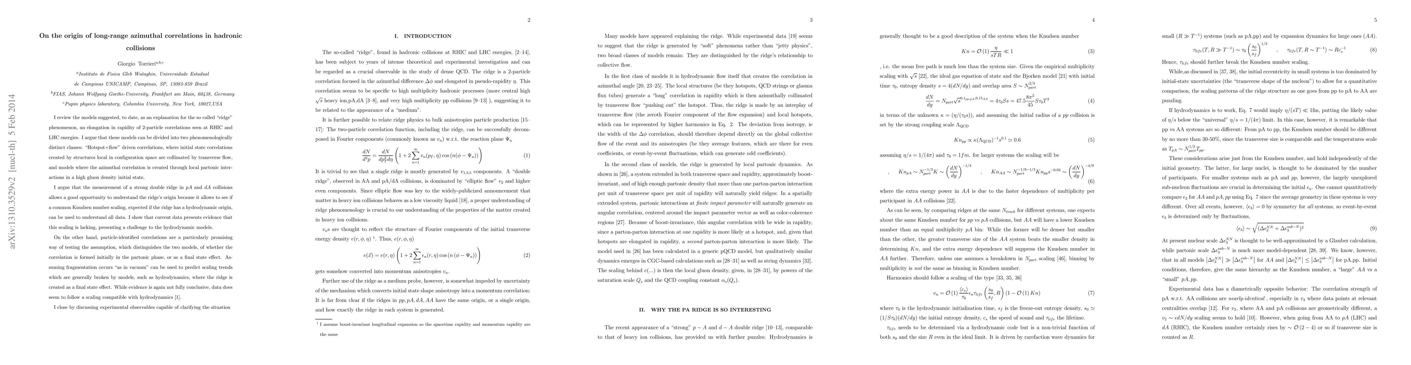 We review the models suggested, to date, as an explanation for the so called "ridge" phenomenon, an elongation in rapidity of 2-particle correlations seen at RHIC and LHC energies. We argue that these models can be divided into two phenomenologically distinct classes: "Hotspot+flow" driven correlations, where initial state correlations created by structures local in configuration space are collimated by transverse flow, and models where the azimuthal correlation is created through local partonic interactions in a high gluon density initial state. We further argue that the key to distinguish these two scenarios is to experimentally examine the role flow plays in the ridge. The measurement of a strong double ridge in $pA$ and $dA$ collisions allows a good opportunity to understand the ridge's origin. In this sense, particle-identified correlations are particularly promising way of testing the assumptions at the base of either of the two models above. The successful fit of the pA ridge by hydrodynamic models \cite{us}, therefore, suggests that the ridge is primarily a "final state effect" generated by radial expansion, although its scaling across system sizes is non-trivial to reconcile with hydrodynamic expectations. We close by discussing experimental observables capable of clarifying the situation.