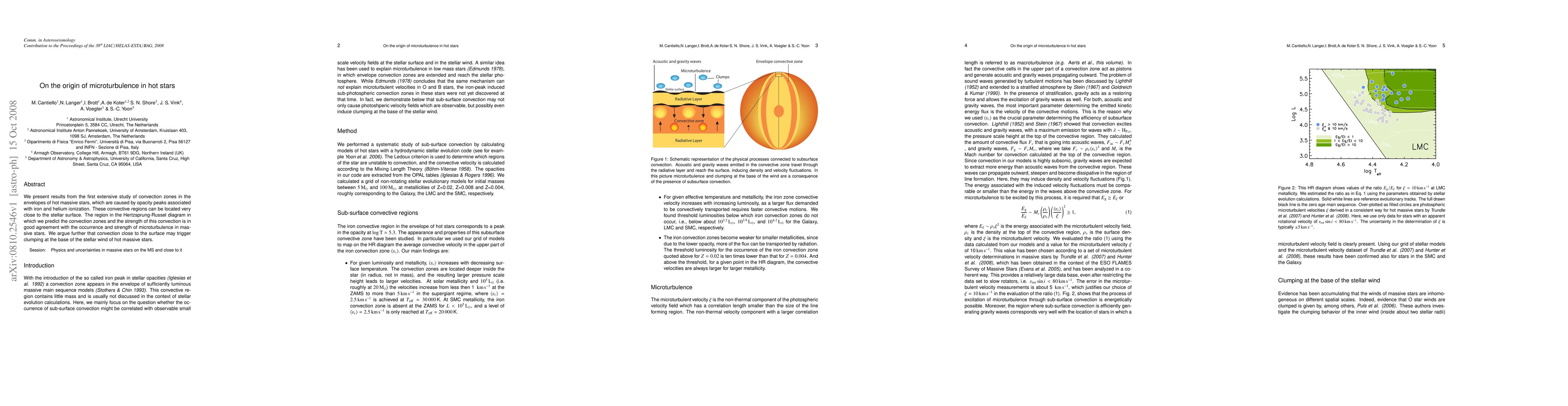 Researchers studied convection zones in hot massive stars, finding that microturbulence occurs when opacity peaks near the stellar surface, potentially triggering clumping in the stellar wind.