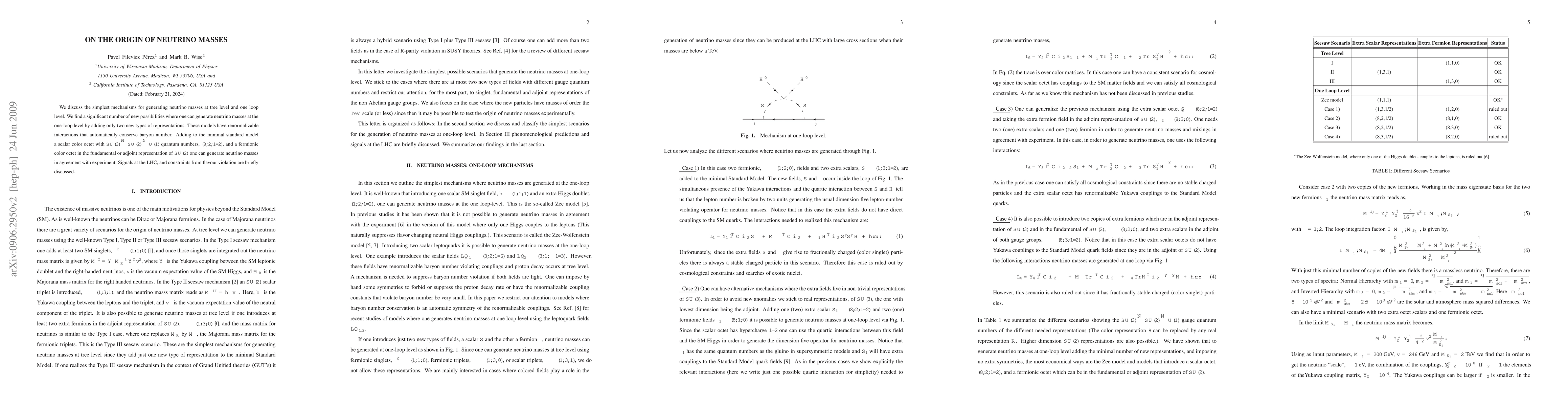 The paper presents a detailed analysis of one-loop mechanisms for generating neutrino masses with minimal new representations, preserving baryon number conservation.