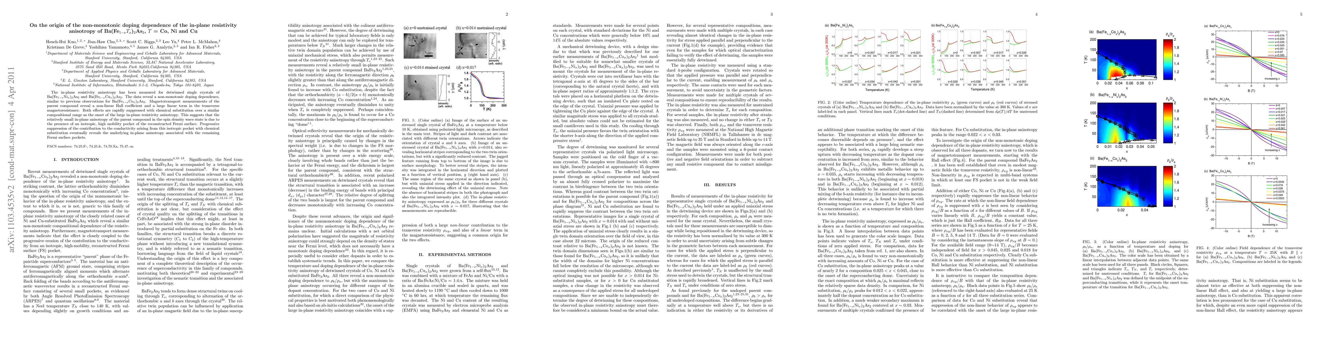 This paper investigates the non-monotonic doping dependence of in-plane resistivity anisotropy in Ba(Fe$_{1-x}T_x$)$_2$As$_2$ ($T$ = Co, Ni, Cu) and finds that magnetotransport properties are significantly altered by chemical substitution, revealing an underlying Fermi surface anisotropy. The study suggests that the parent compound's small anisotropy results from an isotropic, high mobility Fermi surface pocket, which is progressively suppressed with doping, exposing the intrinsic anisotropy of the remaining Fermi surface pockets.