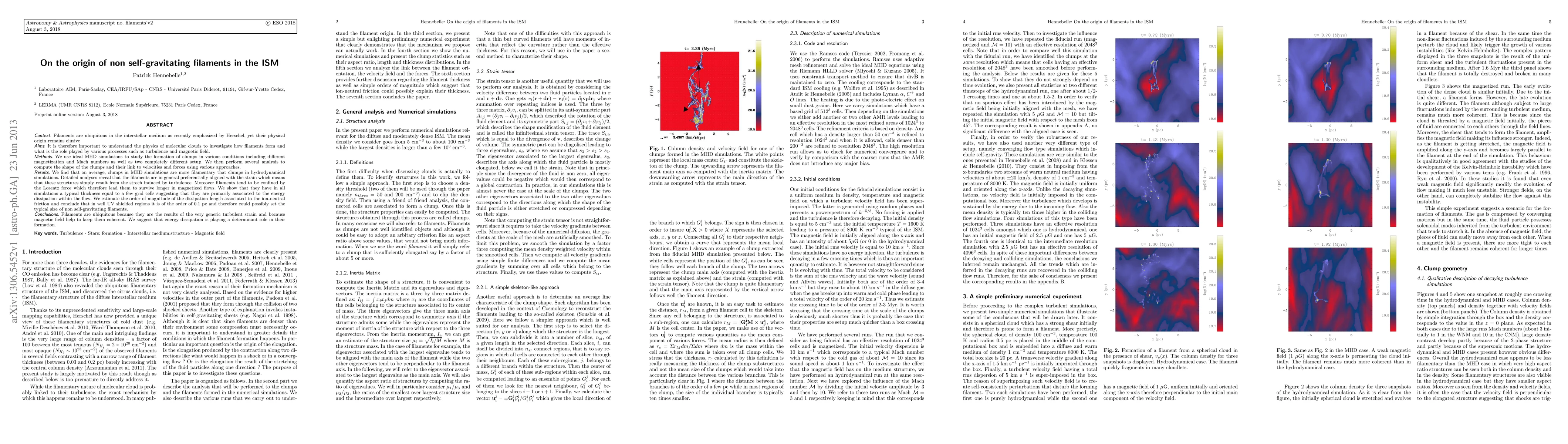 This paper investigates the formation of non self-gravitating filaments in the interstellar medium using ideal MHD simulations, finding that turbulence-induced strain and magnetic fields play crucial roles. The study concludes that filaments' typical size is set by energy dissipation due to ion-neutral friction, suggesting a dissipation length of around 0.1 pc in UV shielded regions.