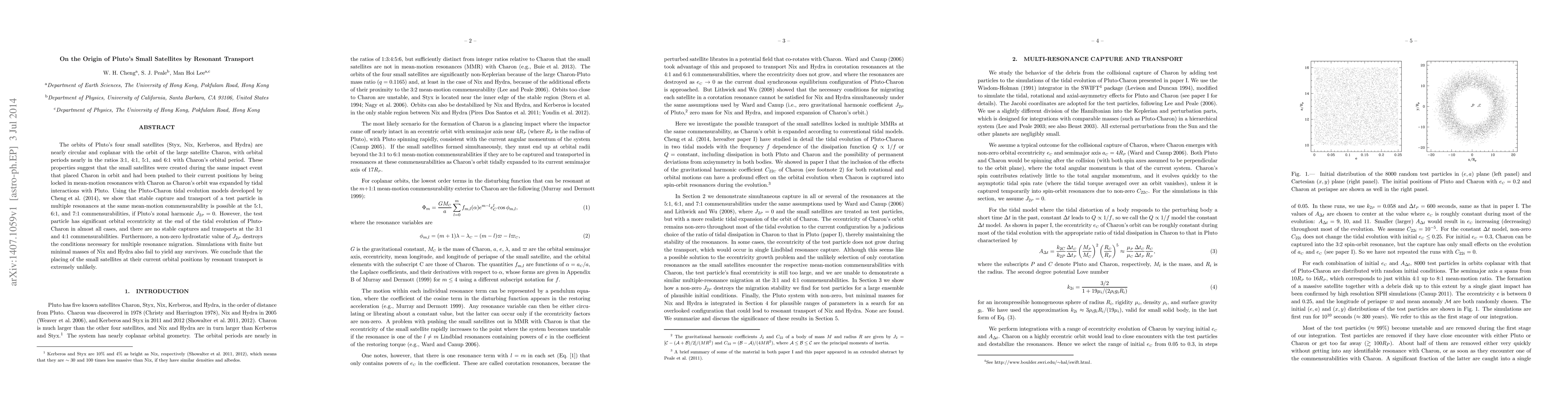The orbits of Pluto's four small satellites (Styx, Nix, Kerberos, and Hydra) are nearly circular and coplanar with the orbit of the large satellite Charon, with orbital periods nearly in the ratios 3:1, 4:1, 5:1, and 6:1 with Charon's orbital period. These properties suggest that the small satellites were created during the same impact event that placed Charon in orbit and had been pushed to their current positions by being locked in mean-motion resonances with Charon as Charon's orbit was expanded by tidal interactions with Pluto. Using the Pluto-Charon tidal evolution models developed by Cheng et al. (2014), we show that stable capture and transport of a test particle in multiple resonances at the same mean-motion commensurability is possible at the 5:1, 6:1, and 7:1 commensurabilities, if Pluto's zonal harmonic $J_{2P} = 0$. However, the test particle has significant orbital eccentricity at the end of the tidal evolution of Pluto-Charon in almost all cases, and there are no stable captures and transports at the 3:1 and 4:1 commensurabilities. Furthermore, a non-zero hydrostatic value of $J_{2P}$ destroys the conditions necessary for multiple resonance migration. Simulations with finite but minimal masses of Nix and Hydra also fail to yield any survivors. We conclude that the placing of the small satellites at their current orbital positions by resonant transport is extremely unlikely.