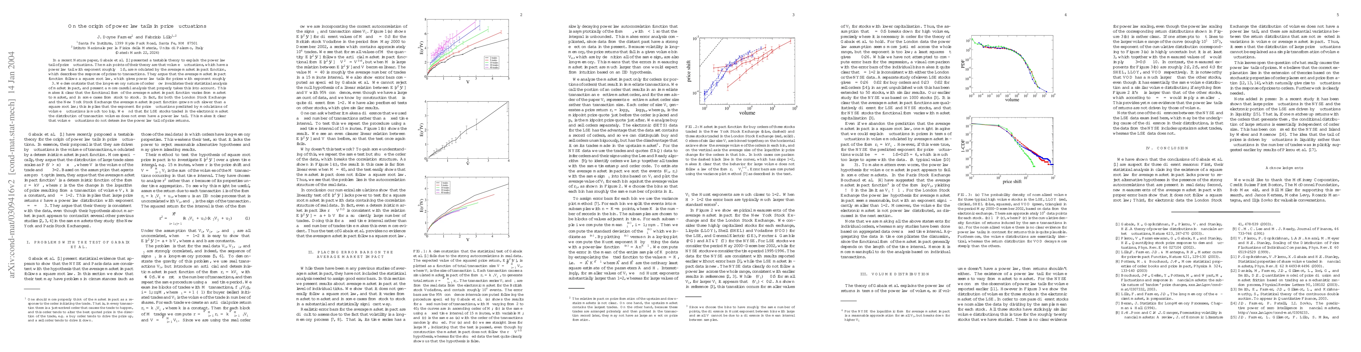 In a recent Nature paper, Gabaix et al. \cite{Gabaix03} presented a theory to explain the power law tail of price fluctuations. The main points of their theory are that volume fluctuations, which have a power law tail with exponent roughly -1.5, are modulated by the average market impact function, which describes the response of prices to transactions. They argue that the average market impact function follows a square root law, which gives power law tails for prices with exponent roughly -3. We demonstrate that the long-memory nature of order flow invalidates their statistical analysis of market impact, and present a more careful analysis that properly takes this into account. This makes it clear that the functional form of the average market impact function varies from market to market, and in some cases from stock to stock. In fact, for both the London Stock Exchange and the New York Stock Exchange the average market impact function grows much slower than a square root law; this implies that the exponent for price fluctuations predicted by modulations of volume fluctuations is much too big. We find that for LSE stocks the distribution of transaction volumes does not even have a power law tail. This makes it clear that volume fluctuations do not determine the power law tail of price returns.
