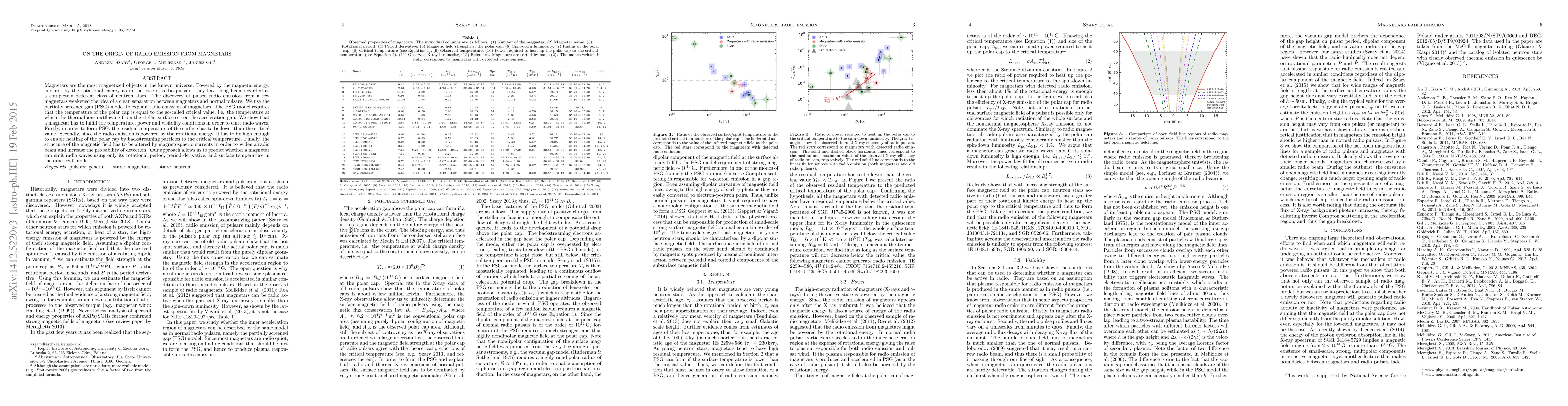 This paper explores the origin of radio emissions from magnetars using the partially screened gap (PSG) model, demonstrating that magnetars must meet specific temperature, power, and visibility conditions to emit radio waves. The study predicts radio emission potential based on the magnetar's rotational period, period derivative, and surface temperature.