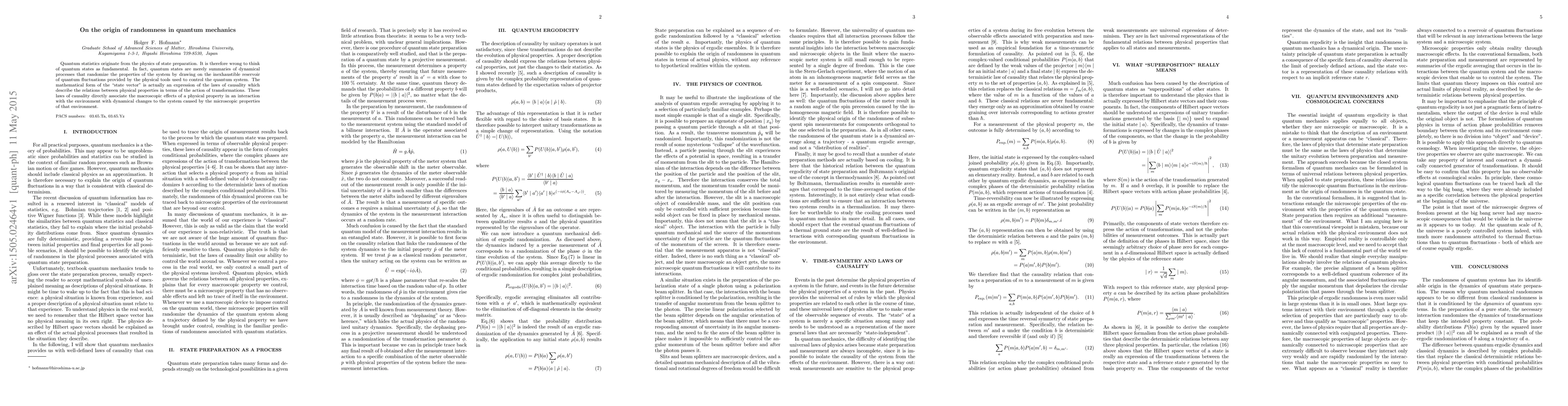Quantum statistics originate from the physics of state preparation. It is therefore wrong to think of quantum states as fundamental. In fact, quantum states are merely summaries of dynamical processes that randomize the properties of the system by drawing on the inexhaustible reservoir of quantum fluctuations provided by the physical tools used to control the quantum system. The mathematical form of the "state vector" is actually an expression of the laws of causality which describe the relations between physical properties in terms of the action of transformations. These laws of causality directly associate the macroscopic effects of a physical property in an interaction with the environment with dynamical changes to the system caused by the microscopic properties of that environment.