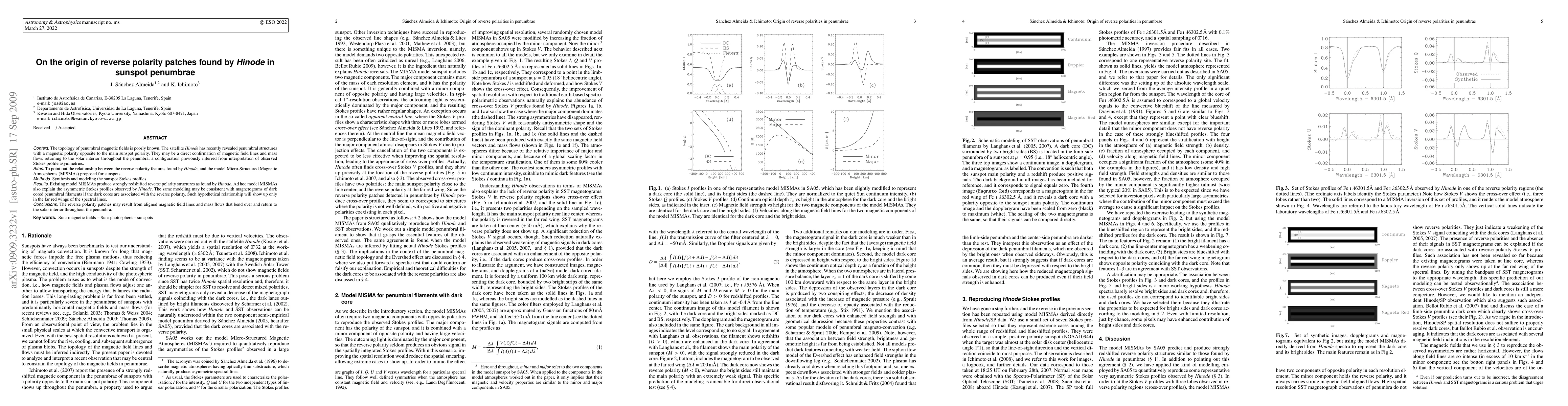 This paper investigates reverse polarity patches in sunspot penumbrae observed by Hinode, suggesting they confirm magnetic field lines and mass flows returning to the solar interior. The study links these findings to the Micro-Structured Magnetic Atmospheres (MISMAs) model, demonstrating how MISMAs can produce the observed redshifted reverse polarity structures and asymmetric Stokes profiles.
