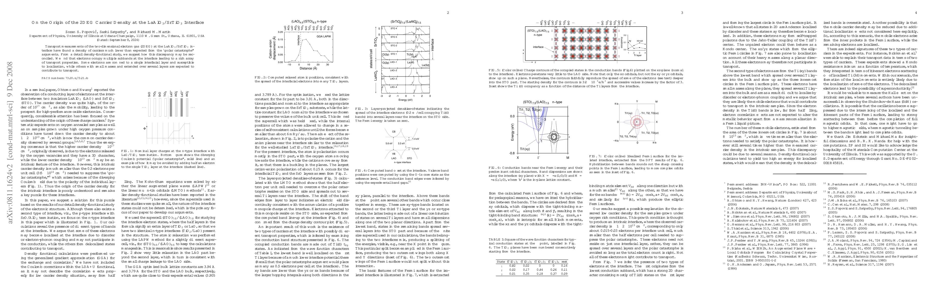 Summary: Transport measurements reveal a lower-than-expected 2DEG carrier density at the LaAlO$_3$/SrTiO$_3$ interface, challenging "polar catastrophe" predictions. Density-functional studies suggest that electrons occupy multiple subbands, with some localized and others contributing to transport due to their extended nature across several layers.