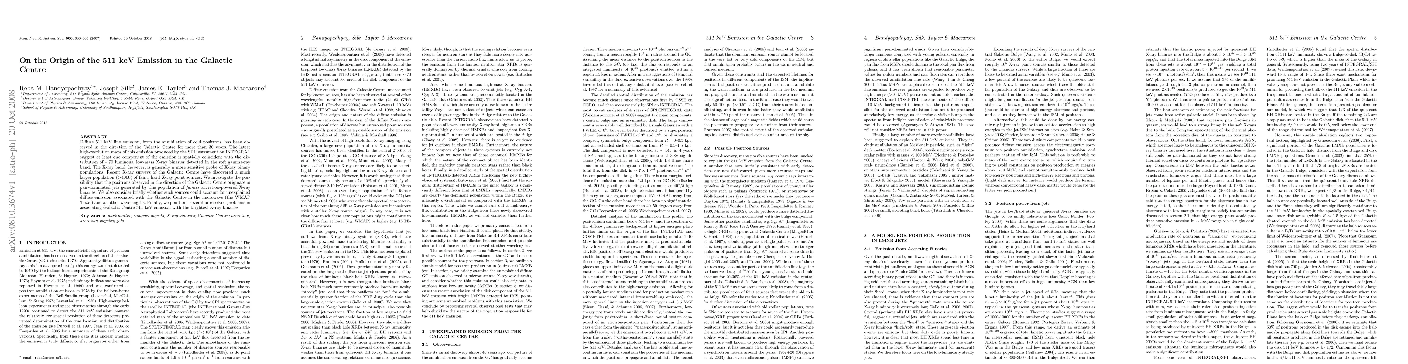This paper investigates the origin of the 511 keV emission in the Galactic Centre, suggesting that faint, hard X-ray point sources from accretion-powered X-ray binaries may generate the positrons responsible for this emission. It also explores the potential link to unexplained microwave and other wavelength emissions.