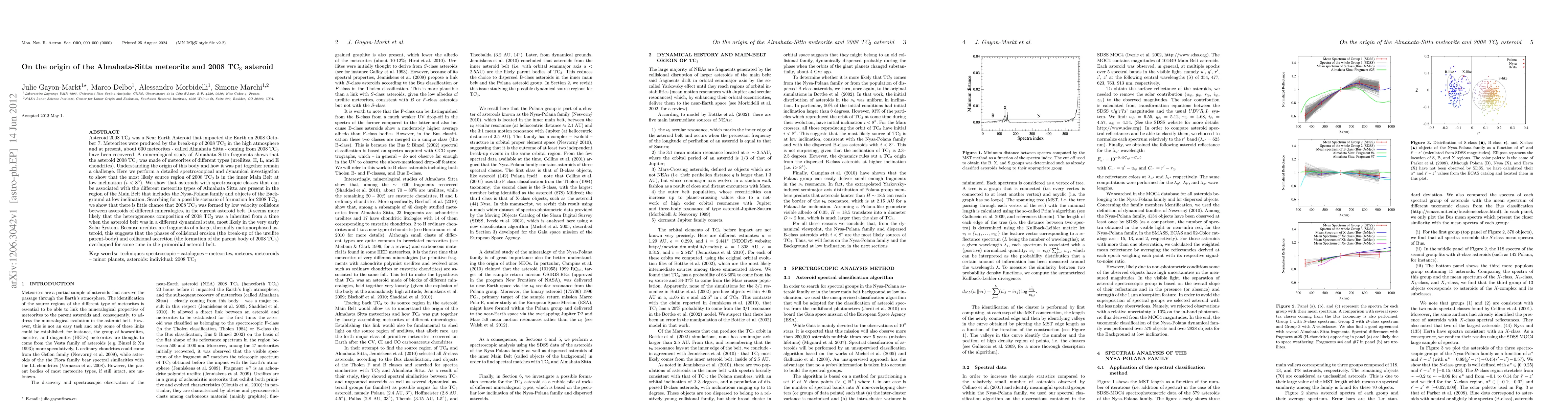 This paper investigates the origin of the Almahata Sitta meteorites from asteroid 2008TC3, revealing a complex composition of different meteorite types. Spectroscopic and dynamical analysis suggests the asteroid likely originated in the inner Main Belt, possibly linked to the Nysa-Polana family. The study concludes that 2008TC3's formation likely occurred in the early Solar System when the asteroid belt's dynamics were different, indicating a history of collisional erosion and accretion.