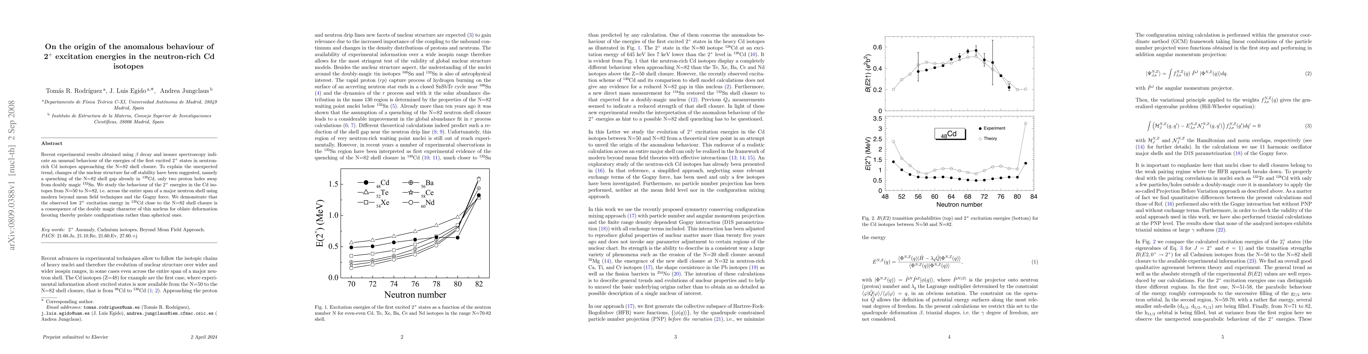 This paper investigates the anomalous low excitation energies of the first 2$^+$ states in neutron-rich Cd isotopes near the N=82 shell closure, suggesting a quenching of the N=82 shell gap. Using modern beyond mean field techniques and the Gogny force, it concludes that the low 2$^+$ energy in $^{128}$Cd is due to its doubly magic character favoring prolate configurations.