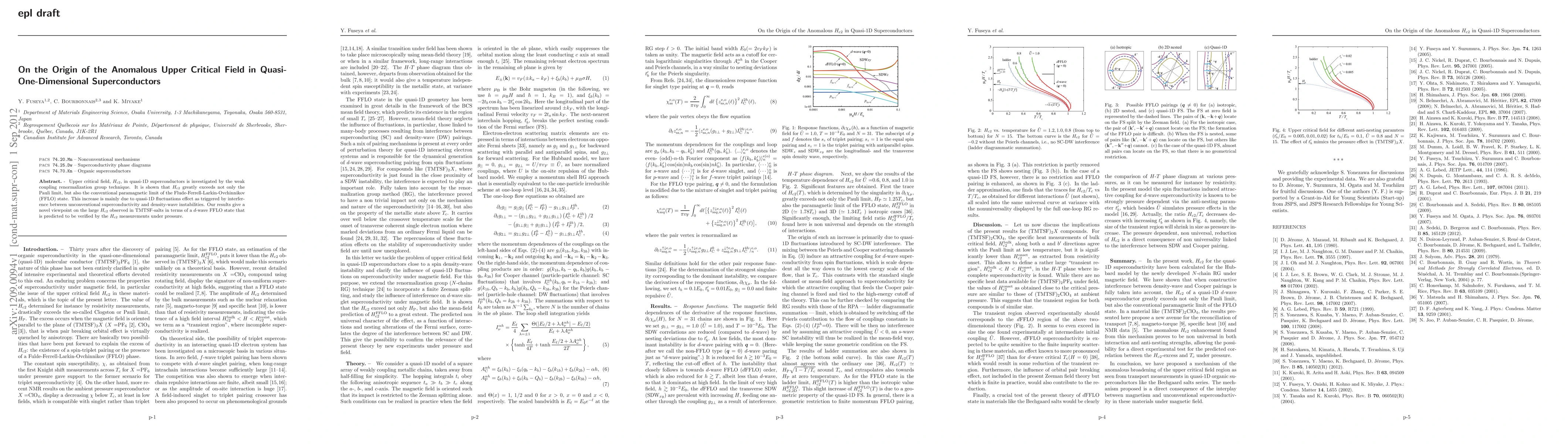 This research uses weak coupling renormalization group technique to investigate upper critical field (H_c2) in quasi-1D superconductors. It reveals that H_c2 surpasses both the Pauli and conventional paramagnetic limits, mainly due to quasi-1D fluctuations arising from interference between unconventional superconductivity and density-wave instabilities. This suggests a d-wave FFLO state explanation for large H_c2 observed in TMTSF-salts, verifiable through H_c2 measurements under pressure.
