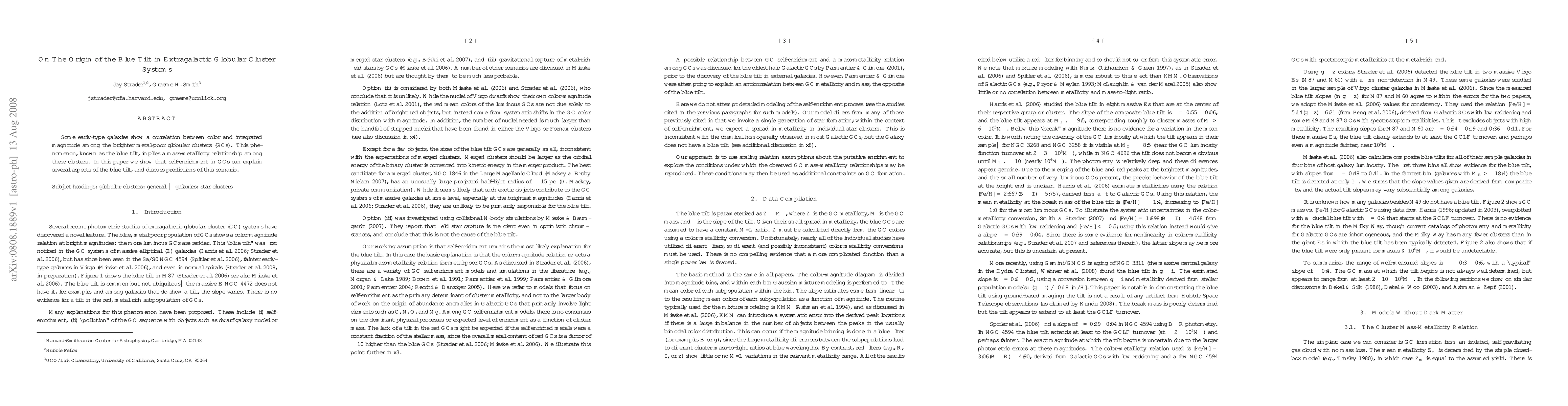 This paper demonstrates that self-enrichment within globular clusters can account for the observed blue tilt in extragalactic globular cluster systems, suggesting a mass-metallicity relationship. It also discusses the implications and predictions of this enrichment scenario.