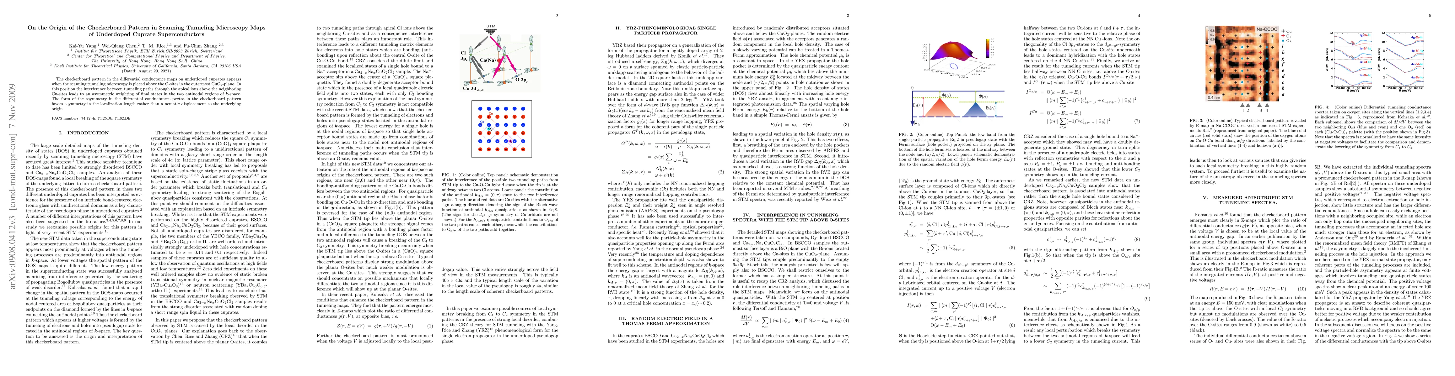 Summary: The checkerboard pattern in underdoped cuprate superconductors' scanning tunneling microscopy maps arises from interference between tunneling paths above O-sites, leading to asymmetric weighting in antinodal regions. This asymmetry favors localization length differences over nematic displacement as the origin.