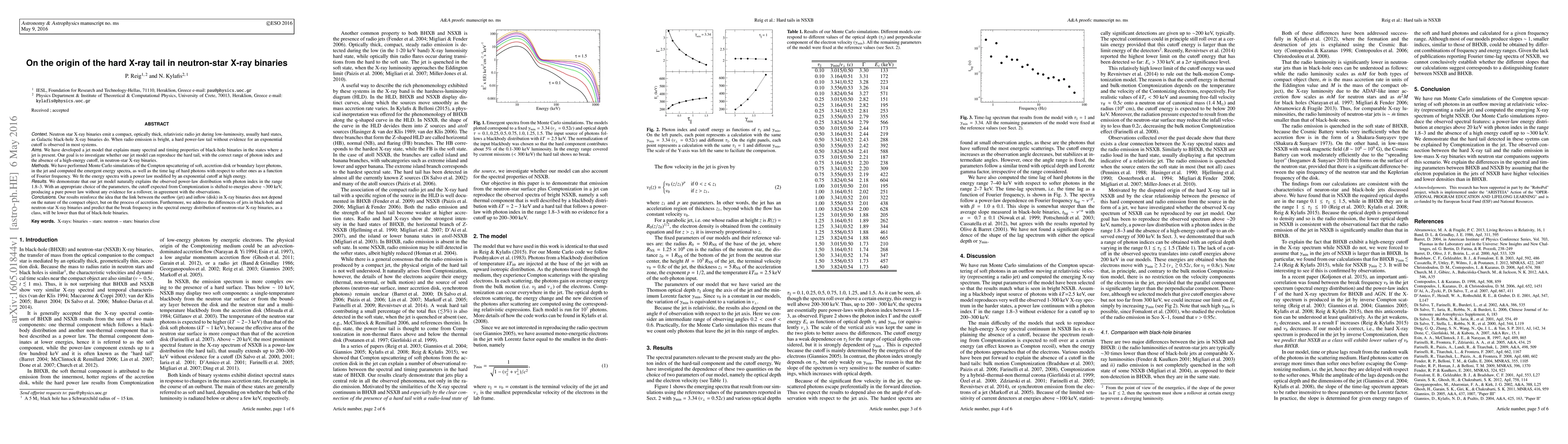 This paper develops a jet model to explain the hard X-ray tail in neutron-star X-ray binaries, showing through Monte Carlo simulations that the model can reproduce the observed power-law distribution without a high-energy cutoff, suggesting a universal accretion process regardless of the compact object type.