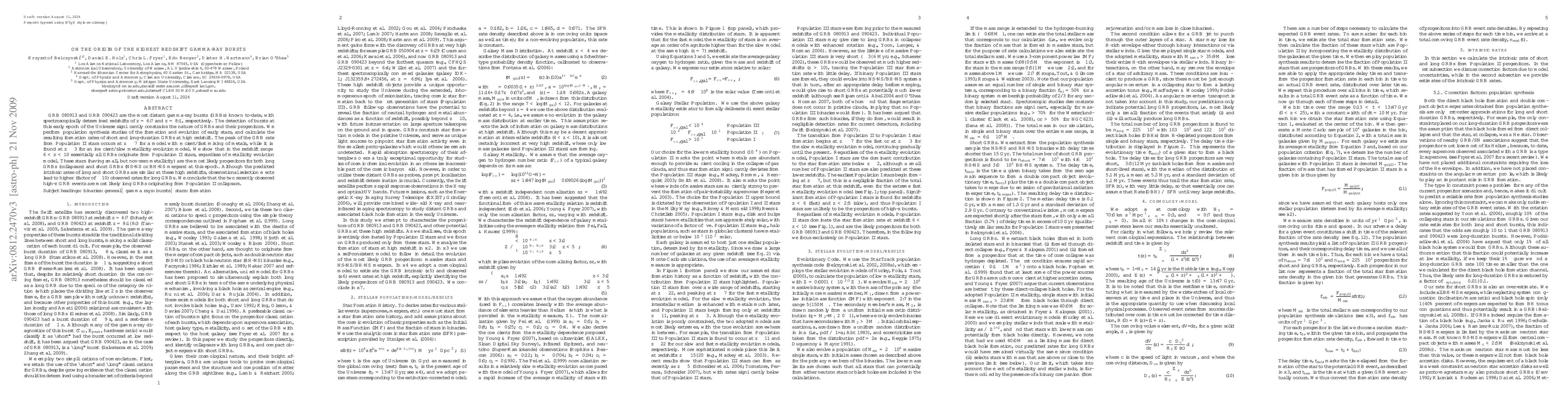This paper investigates the origins of the highest redshift gamma-ray bursts (GRBs) GRB 080913 and GRB 090423, finding they likely originate from Population II stars with small metallicity. The study concludes that these bursts, especially long GRBs, are predominantly from Population II stars in the redshift range 6<z<10, despite differing metallicity evolution models.