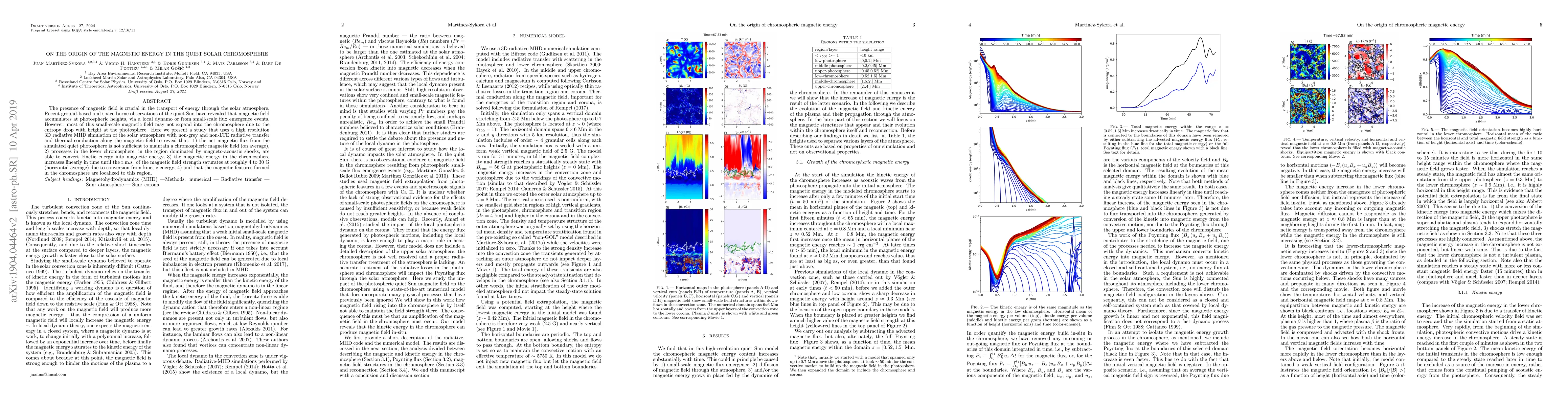 The presence of magnetic field is crucial in the transport of energy through the solar atmosphere. Recent ground-based and space-borne observations of the quiet Sun have revealed that magnetic field accumulates at photospheric heights, via a local dynamo or from small-scale flux emergence events. However, most of this small-scale magnetic field may not expand into the chromosphere due to the entropy drop with height at the photosphere. Here we present a study that uses a high resolution 3D radiative MHD simulation of the solar atmosphere with non-grey and non-LTE radiative transfer and thermal conduction along the magnetic field to reveal that: 1) the net magnetic flux from the simulated quiet photosphere is not sufficient to maintain a chromospheric magnetic field (on average), 2) processes in the lower chromosphere, in the region dominated by magneto-acoustic shocks, are able to convert kinetic energy into magnetic energy, 3) the magnetic energy in the chromosphere increases linearly in time until the r.m.s. of the magnetic field strength saturates at roughly 4 to 30 G (horizontal average) due to conversion from kinetic energy, 4) and that the magnetic features formed in the chromosphere are localized to this region.