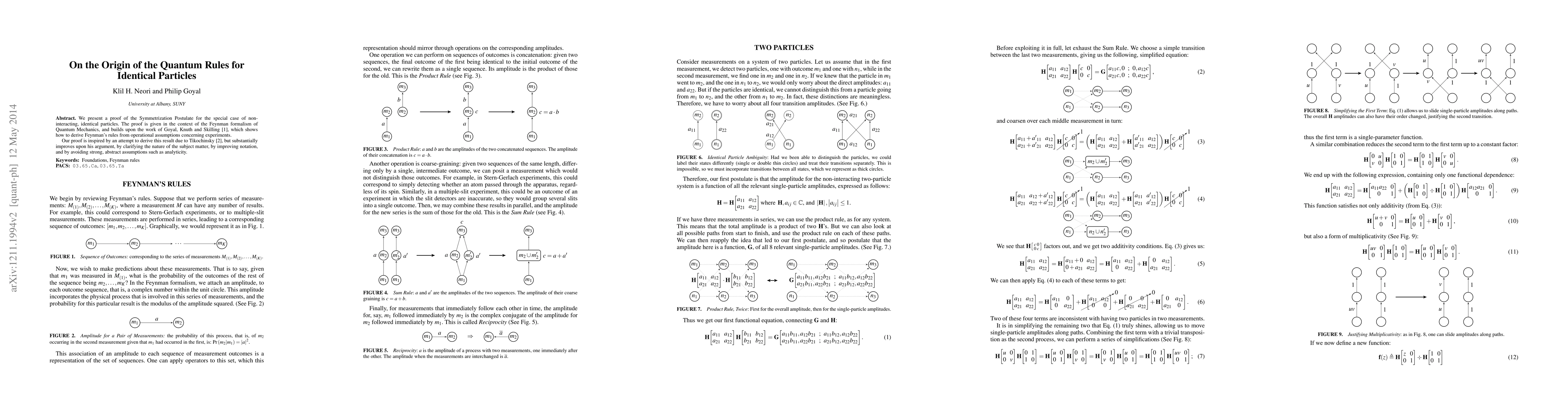 Researchers prove the Symmetrization Postulate for identical particles in Quantum Mechanics using Feynman's rules, improving upon previous attempts with clearer notation and avoiding strong assumptions.