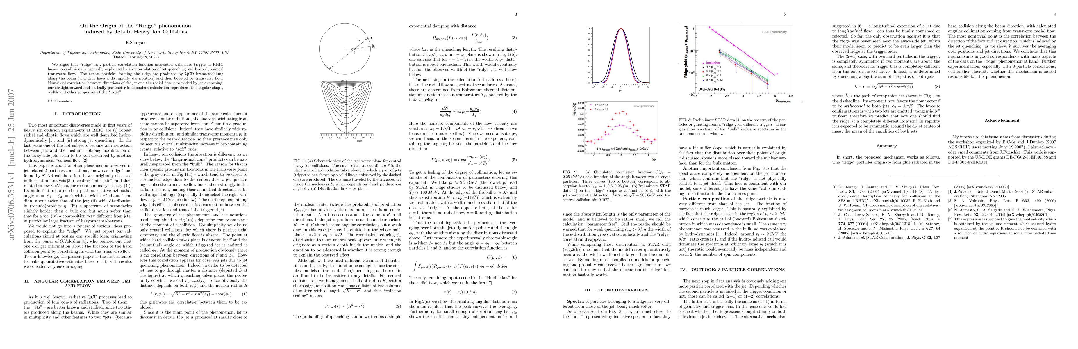 We argue that "ridge" in 2-particle correlation function associated with hard trigger at RHIC heavy ion collisions is naturally explained by an interrelation of jet quenching and hydrodynamical transverse flow. The excess particles forming the ridge are produced by QCD bremsstrahlung along the beam (and thus have wide rapidity distribution) and then boosted by transverse flow. Nontrivial correlation between directions of the jet and the radial flow is provided by jet quenching: our straightforward and basically parameter-independent calculation reproduces the angular shape, width and other properties of the "ridge".