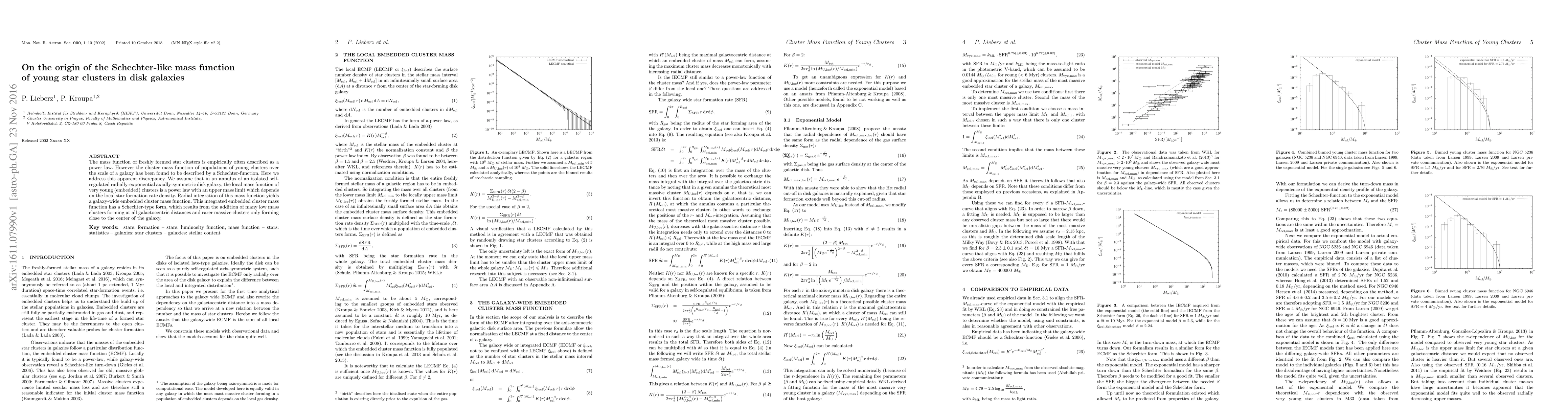 This paper explores why the mass function of young star clusters in disk galaxies follows a Schechter-like distribution despite the local mass function being a power law. It concludes that the integrated mass function across the galaxy results from numerous low-mass clusters forming throughout the galaxy and fewer, more massive clusters forming primarily near the galactic center.