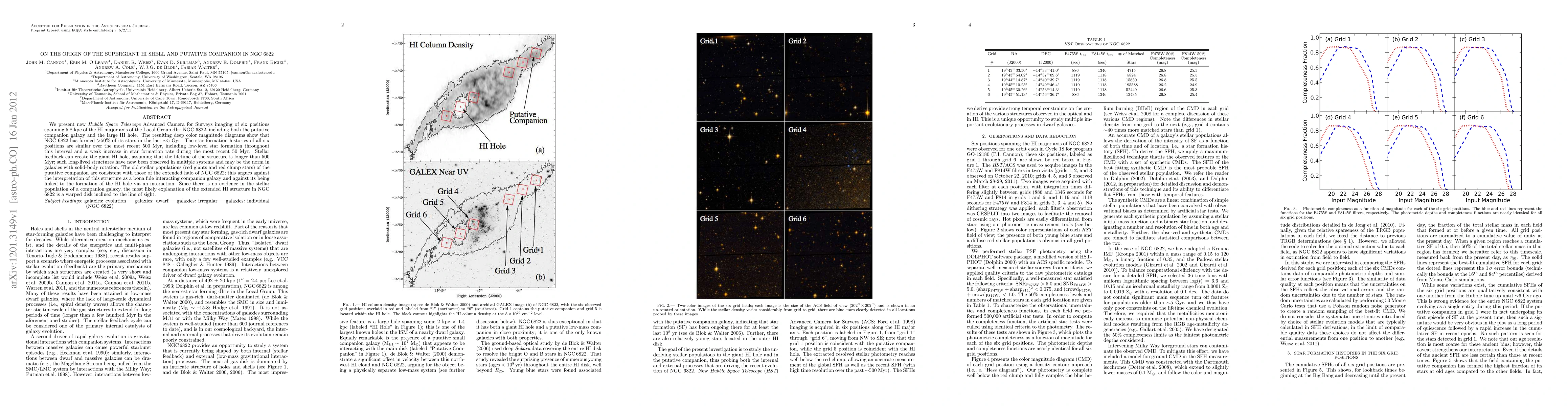 We present new Hubble Space Telescope Advanced Camera for Surveys imaging of six positions spanning 5.8 kpc of the HI major axis of the Local Group dIrr NGC 6822, including both the putative companion galaxy and the large HI hole. The resulting deep color magnitude diagrams show that NGC 6822 has formed >50% of its stars in the last ~5 Gyr. The star formation histories of all six positions are similar over the most recent 500 Myr, including low-level star formation throughout this interval and a weak increase in star formation rate during the most recent 50 Myr. Stellar feedback can create the giant HI hole, assuming that the lifetime of the structure is longer than 500 Myr; such long-lived structures have now been observed in multiple systems and may be the norm in galaxies with solid-body rotation. The old stellar populations (red giants and red clump stars) of the putative companion are consistent with those of the extended halo of NGC 6822; this argues against the interpretation of this structure as a bona fide interacting companion galaxy and against its being linked to the formation of the HI hole via an interaction. Since there is no evidence in the stellar population of a companion galaxy, the most likely explanation of the extended HI structure in NGC 6822 is a warped disk inclined to the line of sight.