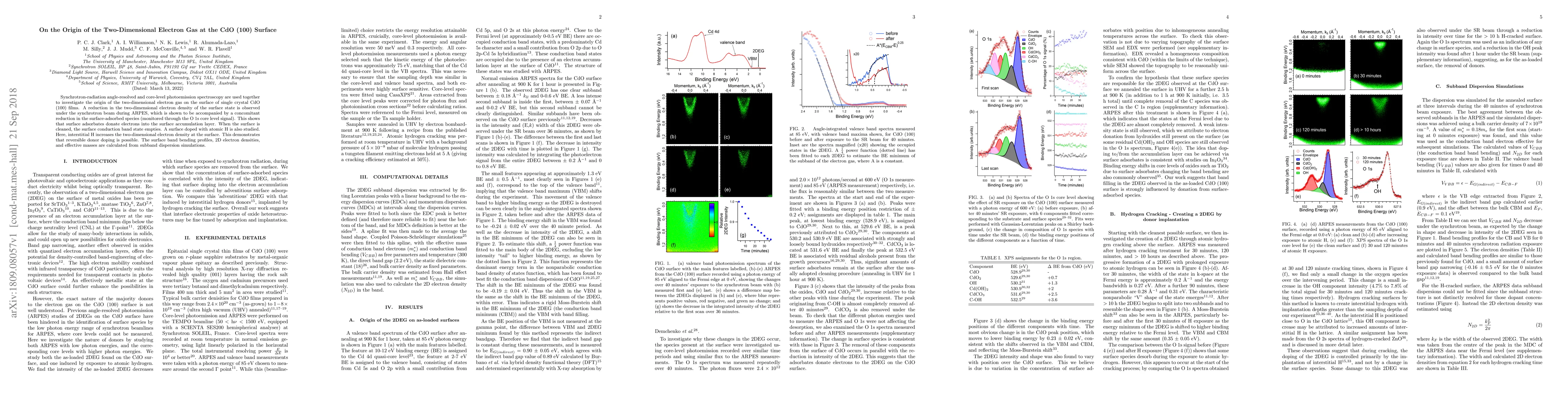 Synchrotron-radiation angle-resolved and core-level photoemission spectroscopy are used together to investigate the origin of the two-dimensional electron gas on the surface of single crystal CdO (100) films. A reduction in the two-dimensional electron density of the surface state is observed under the synchrotron beam during ARPES, which is shown to be accompanied by a concomitant reduction in the surface-adsorbed species (monitored through the O 1s core level signal). This shows that surface adsorbates donate electrons into the surface accumulation layer. When the surface is cleaned, the surface conduction band state empties. A surface doped with atomic H is also studied. Here, interstitial H increases the two-dimensional electron density at the surface. This demonstrates that reversible donor doping is possible. The surface band bending profiles, 2D electron densities, and effective masses are calculated from subband dispersion simulations.
