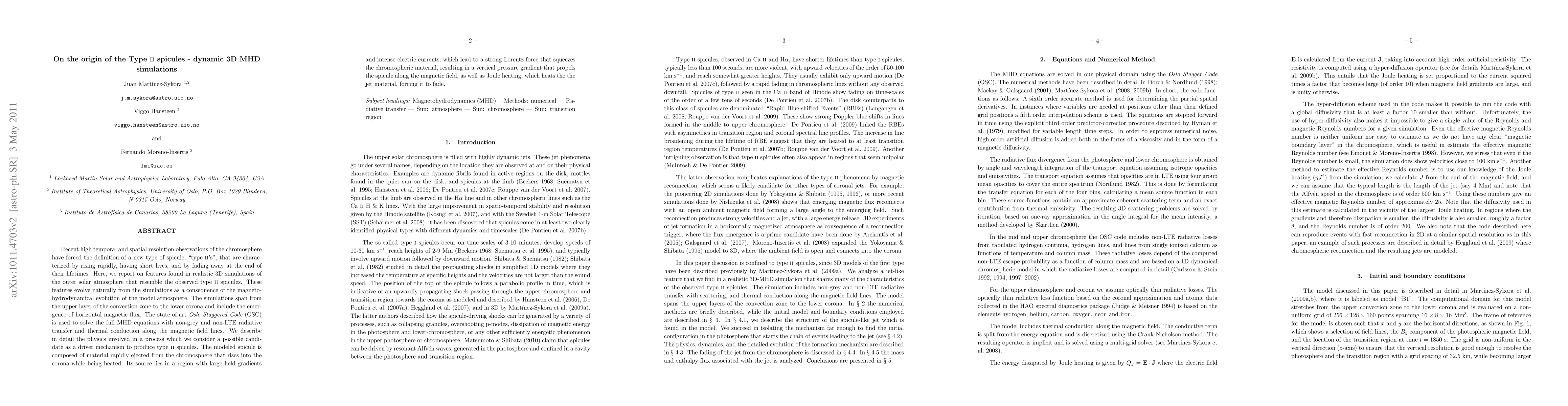 have forced the definition of a new type of spicule, "type II's", that are characterized by rising rapidly, having short lives, and by fading away at the end of their lifetimes. Here, we report on features found in realistic 3D simulations of the outer solar atmosphere that resemble the observed type II spicules. These features evolve naturally from the simulations as a consequence of the magnetohydrodynamical evolution of the model atmosphere. The simulations span from the upper layer of the convection zone to the lower corona and include the emergence of horizontal magnetic flux. The state-of-art Oslo Staggered Code (OSC) is used to solve the full MHD equations with non-grey and non-LTE radiative transfer and thermal conduction along the magnetic field lines. We describe in detail the physics involved in a process which we consider a possible candidate as a driver mechanism to produce type II spicules. The modeled spicule is composed of material rapidly ejected from the chromosphere that rises into the corona while being heated. Its source lies in a region with large field gradients and intense electric currents, which lead to a strong Lorentz force that squeezes the chromospheric material, resulting in a vertical pressure gradient that propels the spicule along the magnetic field, as well as Joule heating, which heats the the jet material, forcing it to fade.