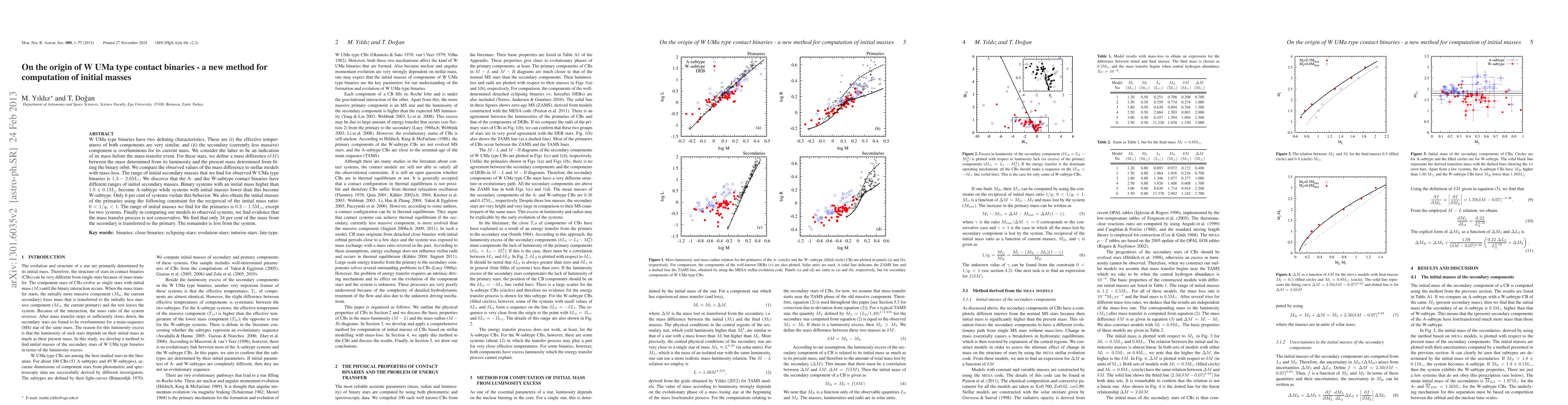 Researchers developed a new method to calculate initial masses of W UMa type contact binaries, finding that secondary masses range from 1.3-2.6 M$_{ m ullet}$, with A-subtype systems having higher initial masses than W-subtype systems.