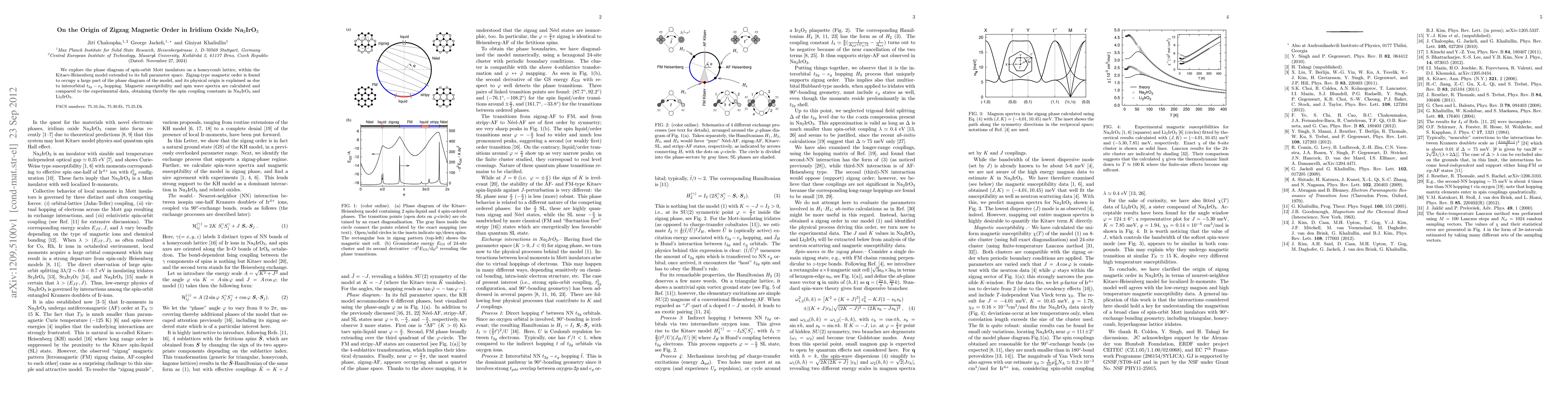 This paper investigates the zigzag magnetic order in Na2IrO3 using the Kitaev-Heisenberg model, revealing its prevalence in the phase diagram due to interorbital t2g-eg hopping. The study calculates magnetic susceptibility and spin wave spectra, aligning theoretical results with experimental data to determine spin coupling constants.