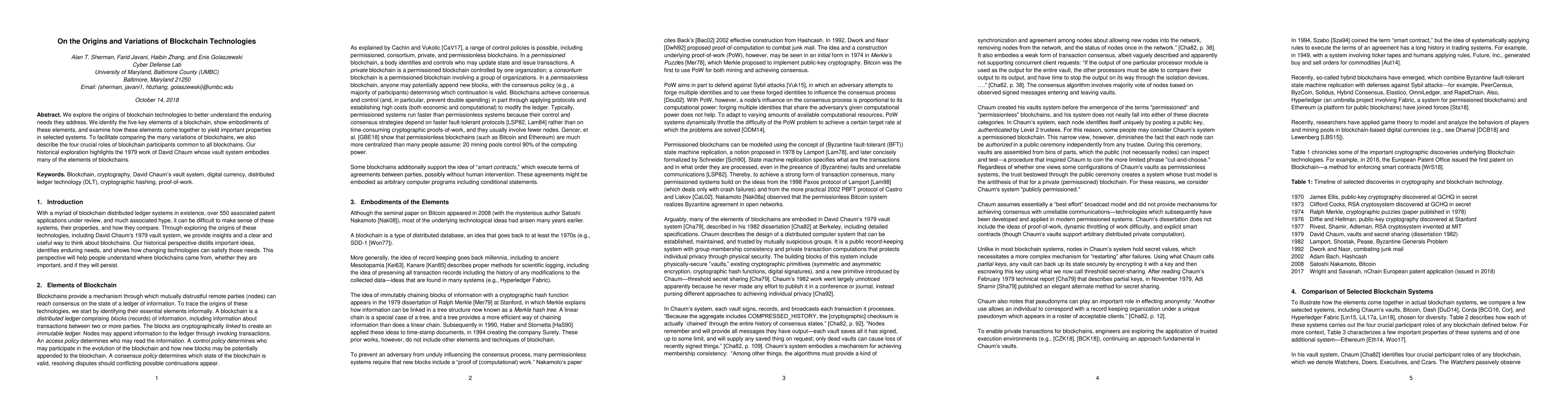 This paper explores the origins of blockchain technologies, identifying key elements and crucial roles that come together to yield important properties in various systems. It highlights the 1979 work of David Chaum as an early precursor to modern blockchains.