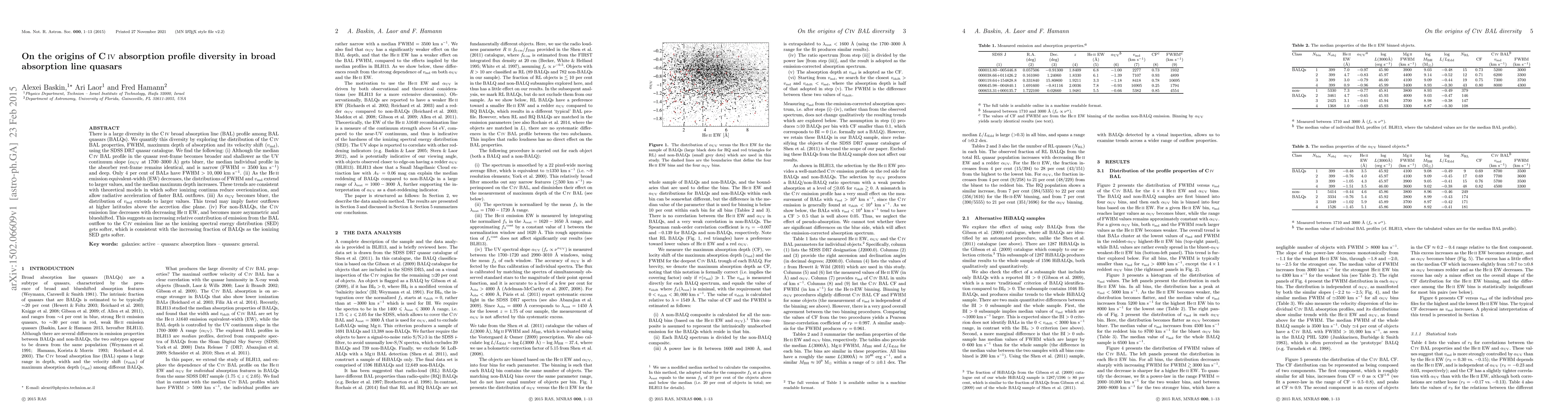 There is a large diversity in the C IV broad absorption line (BAL) profile among BAL quasars (BALQs). We quantify this diversity by exploring the distribution of the C IV BAL properties, FWHM, maximum depth of absorption and its velocity shift ($v_{\rm md}$), using the SDSS DR7 quasar catalogue. We find the following: (i) Although the median C IV BAL profile in the quasar rest-frame becomes broader and shallower as the UV continuum slope ($\alpha_{\rm UV}$ at 1700-3000 A) gets bluer, the median individual profile in the absorber rest-frame remains identical, and is narrow (FWHM = 3500 km/s) and deep. Only 4 per cent of BALs have FWHM > 10,000 km/s. (ii) As the He II emission equivalent-width (EW) decreases, the distributions of FWHM and $v_{\rm md}$ extend to larger values, and the median maximum depth increases. These trends are consistent with theoretical models in which softer ionizing continua reduce overionization, and allow radiative acceleration of faster BAL outflows. (iii) As $\alpha_{\rm UV}$ becomes bluer, the distribution of $v_{\rm md}$ extends to larger values. This trend may imply faster outflows at higher latitudes above the accretion disc plane. (iv) For non-BALQs, the C IV emission line decreases with decreasing He II EW, and becomes more asymmetric and blueshifted. This suggests an increasing relative contribution of emission from the BAL outflow to the C IV emission line as the ionizing spectral energy distribution (SED) gets softer, which is consistent with the increasing fraction of BALQs as the ionizing SED gets softer.