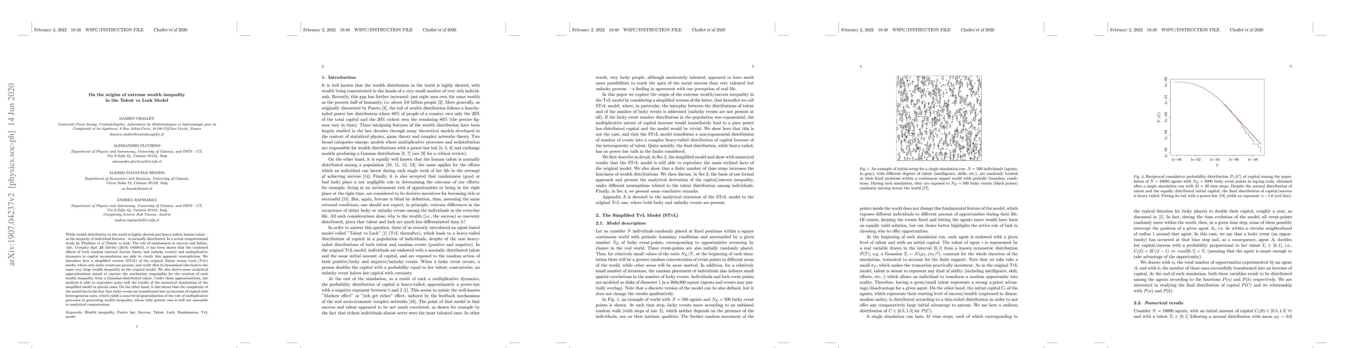 This research introduces a simplified version of the Talent vs Luck (TvL) model, focusing on lucky events to explain extreme wealth inequality. It shows that luck, combined with multiplicative capital accumulation, can generate highly skewed wealth distribution, with the complexity arising from varying rates of lucky event-driven capital increase, challenging full analytical treatment.