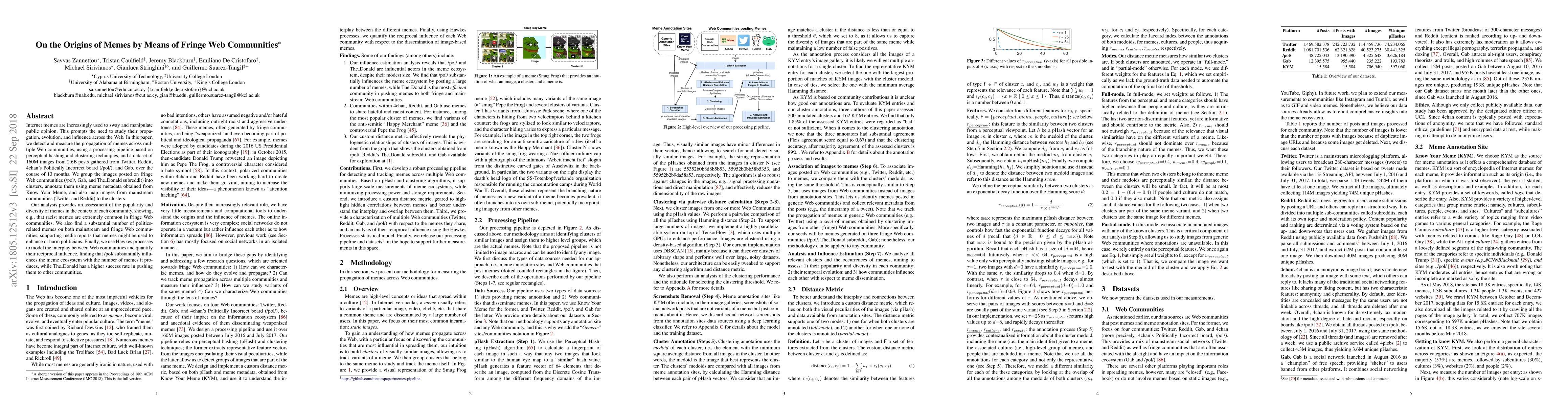 This paper investigates the propagation and evolution of memes across various web communities using a dataset of 160M images from Twitter, Reddit, 4chan's /pol/, and Gab. It finds that fringe communities like /pol/ produce many memes, while The_Donald is more successful in spreading them to mainstream platforms.