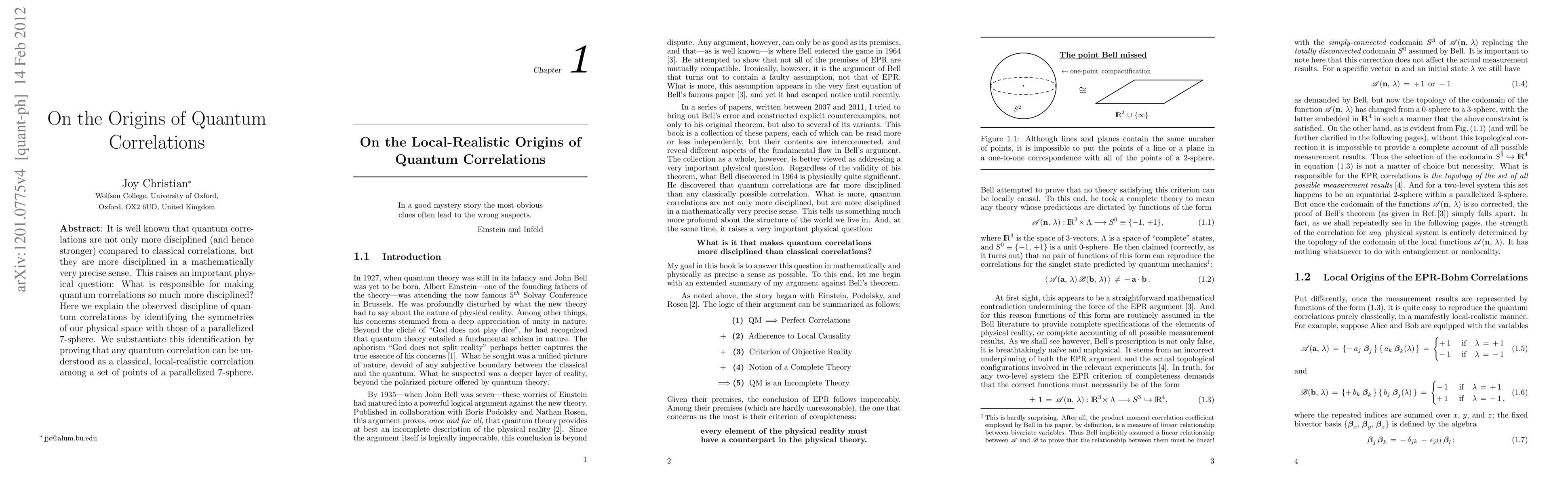 It is well known that quantum correlations are not only more disciplined (and hence stronger) compared to classical correlations, but they are more disciplined in a mathematically very precise sense. This raises an important physical question: What is responsible for making quantum correlations so much more disciplined? Here we explain the observed discipline of quantum correlations by identifying the symmetries of our physical space with those of a parallelized 7-sphere. We substantiate this identification by proving that any quantum correlation can be understood as a classical, local-realistic correlation among a set of points of a parallelized 7-sphere.