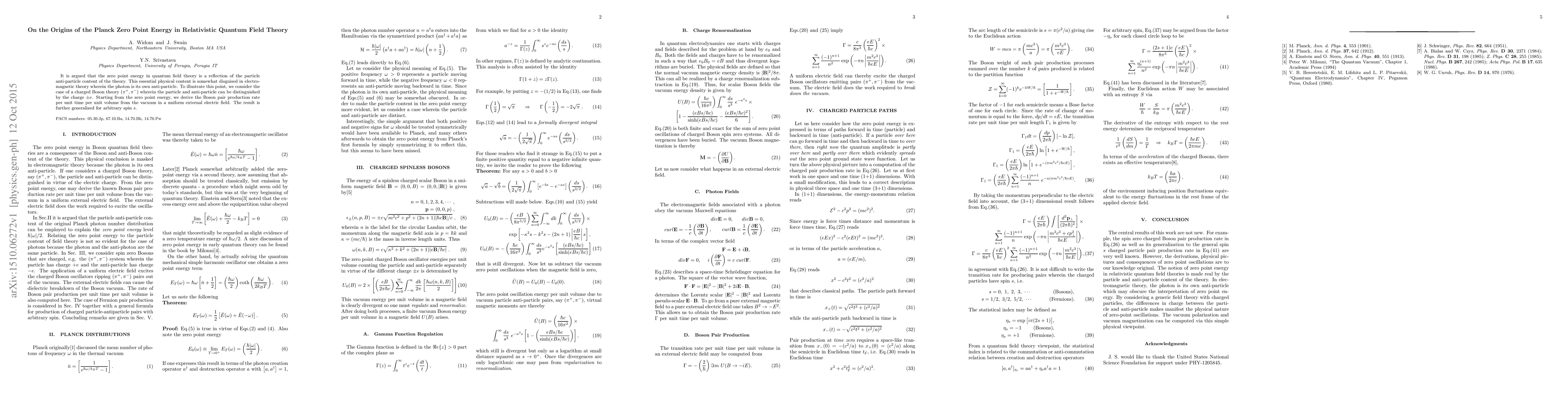It is argued that the zero point energy in quantum field theory is a reflection of the particle anti-particle content of the theory. This essential physical content is somewhat disguised in electromagnetic theory wherein the photon is its own anti-particle. To illustrate this point, we consider the case of a charged Boson theory $(\pi^+,\pi^-)$ wherein the particle and anti-particle can be distinguished by the charge $\pm e$. Starting from the zero point energy, we derive the Boson pair production rate per unit time per unit volume from the vacuum in a uniform external electric field. The result is further generalized for arbitrary spin $s$.