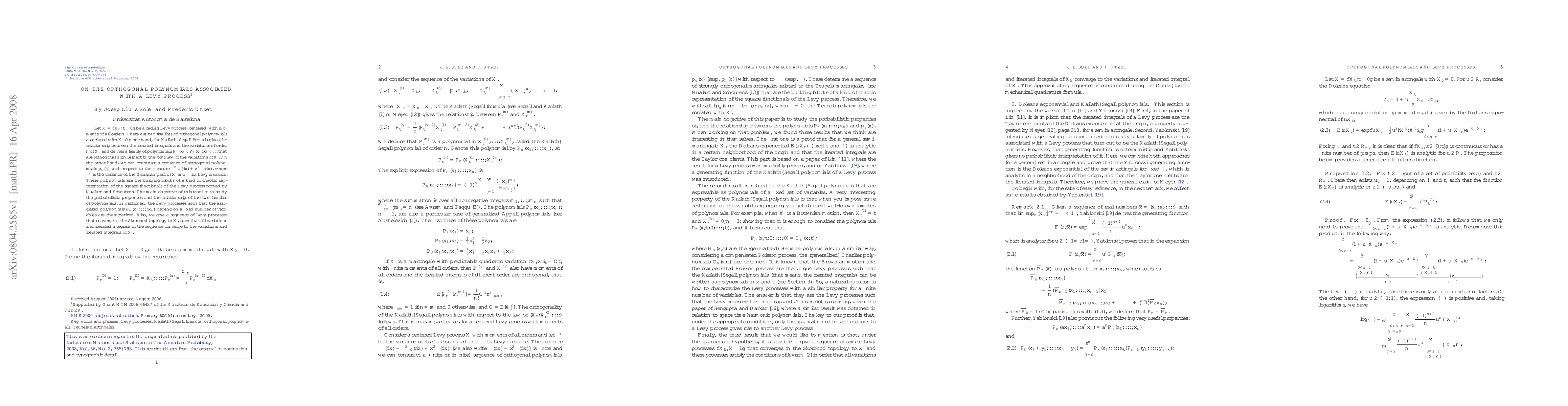 This research paper studies two families of orthogonal polynomials associated with a Lévy process, their probabilistic properties, and relationships between them, including characterization of Lévy processes with certain polynomial dependencies.
