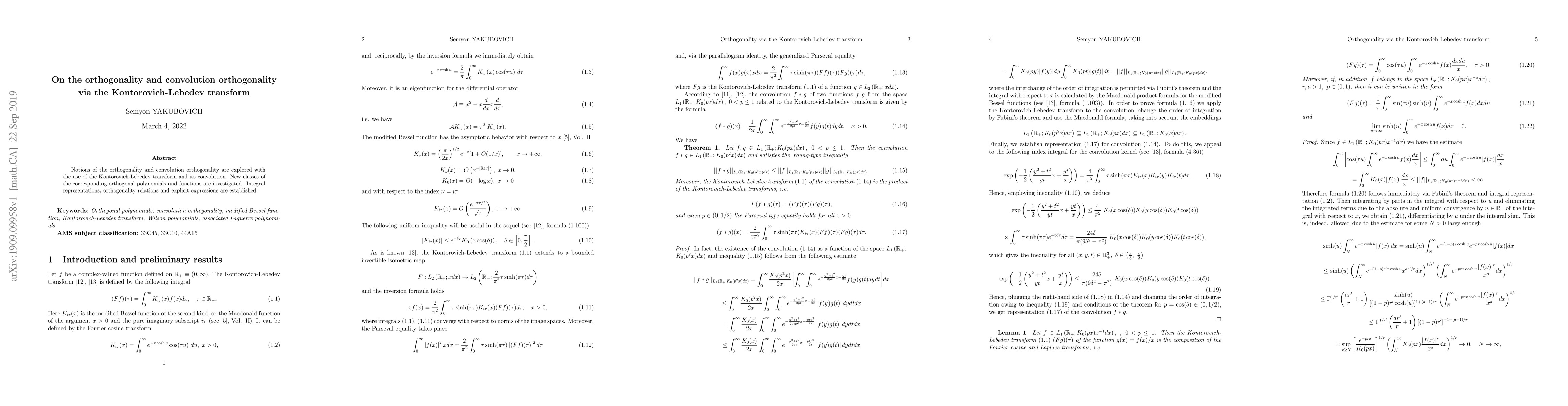 This paper investigates orthogonality and convolution orthogonality using the Kontorovich-Lebedev transform, establishing new classes of orthogonal polynomials and functions, and providing integral representations, orthogonality relations, and explicit expressions.