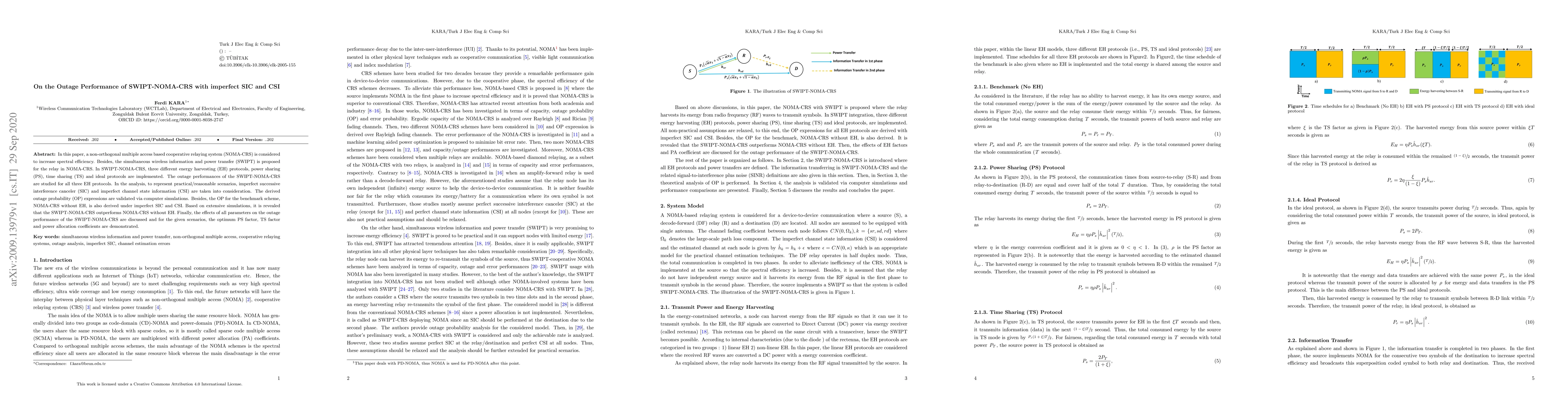 This paper investigates the outage performance of a non-orthogonal multiple access based cooperative relaying system (NOMA-CRS) with simultaneous wireless information and power transfer (SWIPT) under imperfect successive interference canceler (SIC) and channel state information (CSI). It compares three energy harvesting protocols and finds that SWIPT-NOMA-CRS outperforms traditional NOMA-CRS, highlighting optimal protocol factors for improved performance.