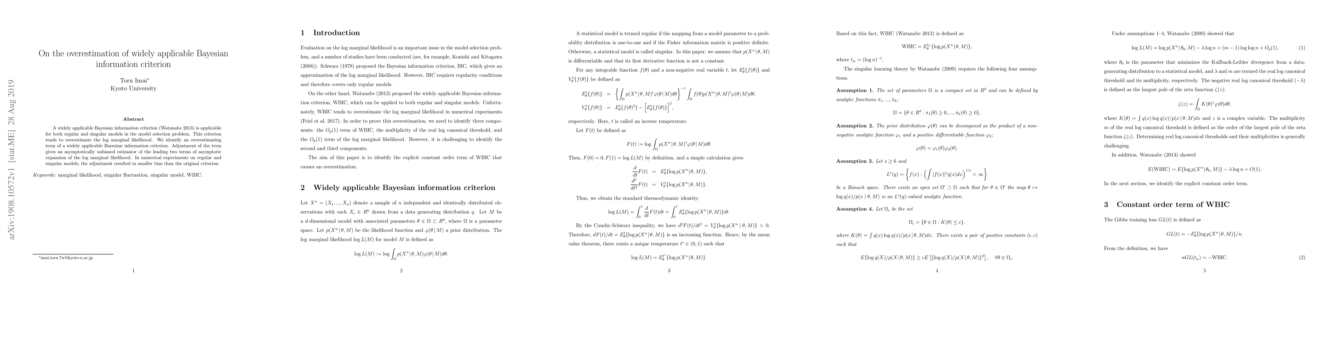 This paper identifies an overestimation issue in the widely applicable Bayesian information criterion, which tends to overestimate the log marginal likelihood. An adjustment to correct this overestimation results in a more accurate, asymptotically unbiased estimator for the log marginal likelihood, as demonstrated through numerical experiments.