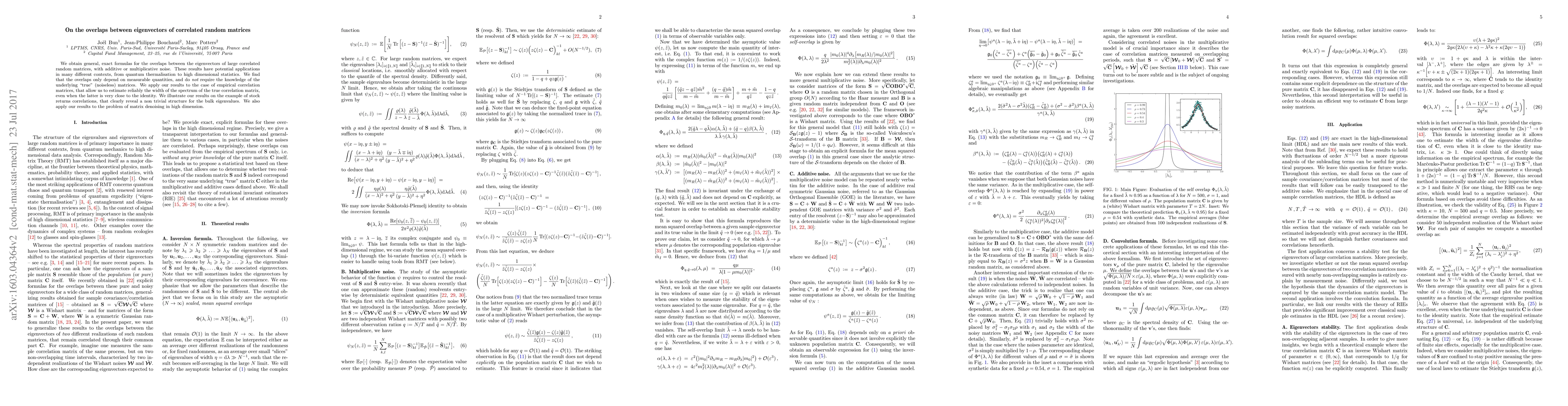 We obtain general, exact formulas for the overlaps between the eigenvectors of large correlated random matrices, with additive or multiplicative noise. These results have potential applications in many different contexts, from quantum thermalisation to high dimensional statistics. We find that the overlaps only depend on measurable quantities, and do not require the knowledge of the underlying "true" (noiseless) matrices. We apply our results to the case of empirical correlation matrices, that allow us to estimate reliably the width of the spectrum of the true correlation matrix, even when the latter is very close to the identity. We illustrate our results on the example of stock returns correlations, that clearly reveal a non trivial structure for the bulk eigenvalues. We also apply our results to the problem of matrix denoising in high dimension.