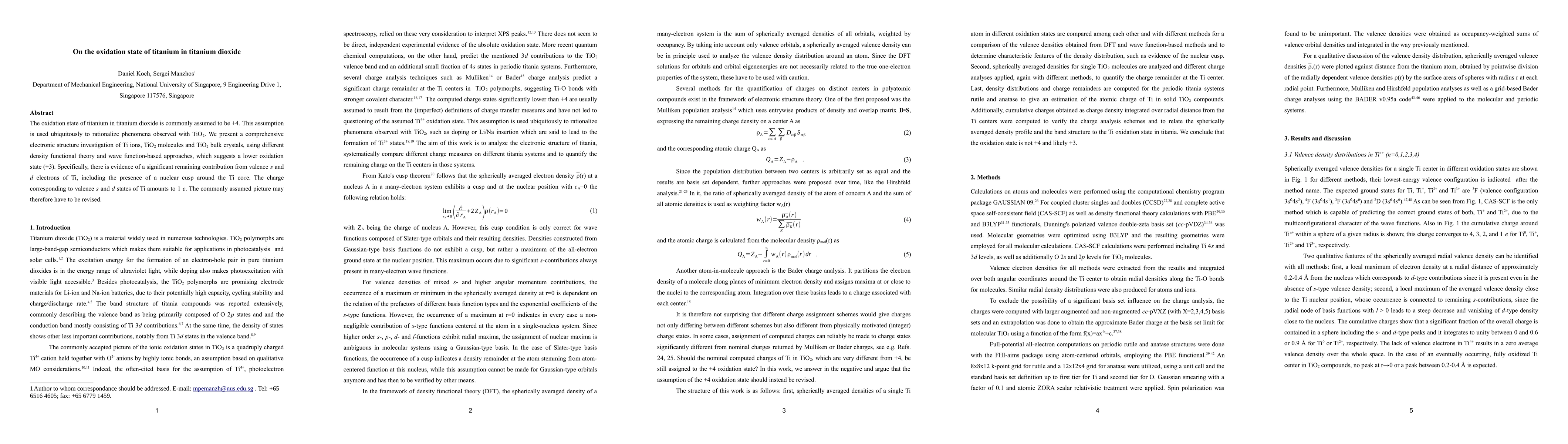This paper challenges the conventional assumption of titanium's +4 oxidation state in titanium dioxide (TiO2), proposing instead a +3 state based on electronic structure investigations. Evidence includes a nuclear cusp and remaining valence s and d electrons, suggesting a reevaluation of TiO2's oxidation state.