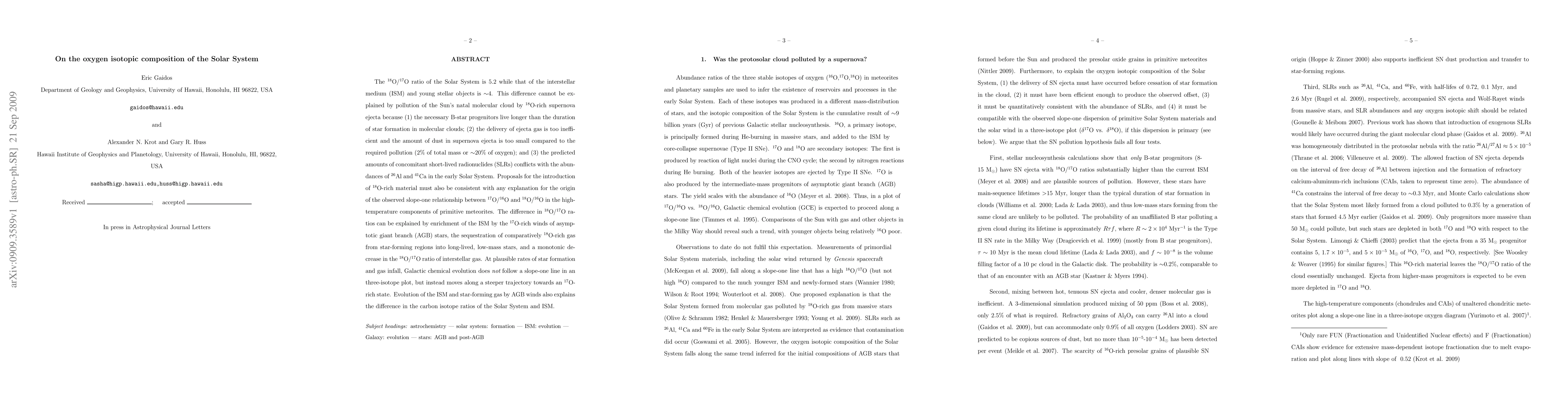The 18O/17O ratio of the Solar System is 5.2 while that of the interstellar medium (ISM) and young stellar objects is ~4. This difference cannot be explained by pollution of the Sun's natal molecular cloud by 18O-rich supernova ejecta because (1) the necessary B-star progenitors live longer than the duration of star formation in molecular clouds; (2) the delivery of ejecta gas is too inefficient and the amount of dust in supernova ejecta is too small compared to the required pollution (2% of total mass or ~20% of oxygen); and (3) the predicted amounts of concomitant short-lived radionuclides (SLRs) conflicts with the abundances of 26Al and 41Ca in the early Solar System. Proposals for the introduction of 18O-rich material must also be consistent with any explanation for the origin of the observed slope-one relationship between 17O/16O and 18O/16O in the high-temperature components of primitive meteorites. The difference in 18O/17O ratios can be explained by enrichment of the ISM by the 17O-rich winds of asymptotic giant branch (AGB) stars, the sequestration of comparatively 18O-rich gas from star-forming regions into long-lived, low-mass stars, and a monotonic decrease in the 18O/17O ratio of interstellar gas. At plausible rates of star formation and gas infall, Galactic chemical evolution does not follow a slope-one line in an three-isotope plot, but instead moves along a steeper trajectory towards an 17O-rich state. Evolution of the ISM and star-forming gas by AGB winds also explains the difference in the carbon isotope ratios of the Solar System and ISM.