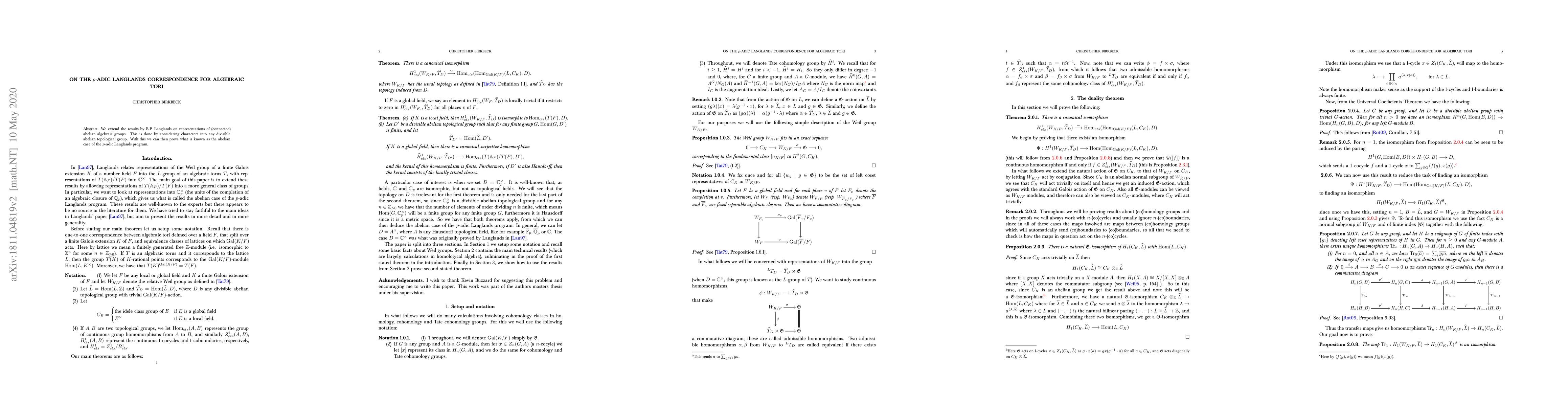We extend the results by R.P. Langlands on representations of (connected) abelian algebraic groups. This is done by considering characters into any divisible abelian topological group. With this we can then prove what is known as the abelian case of the $p$-adic Langlands program.