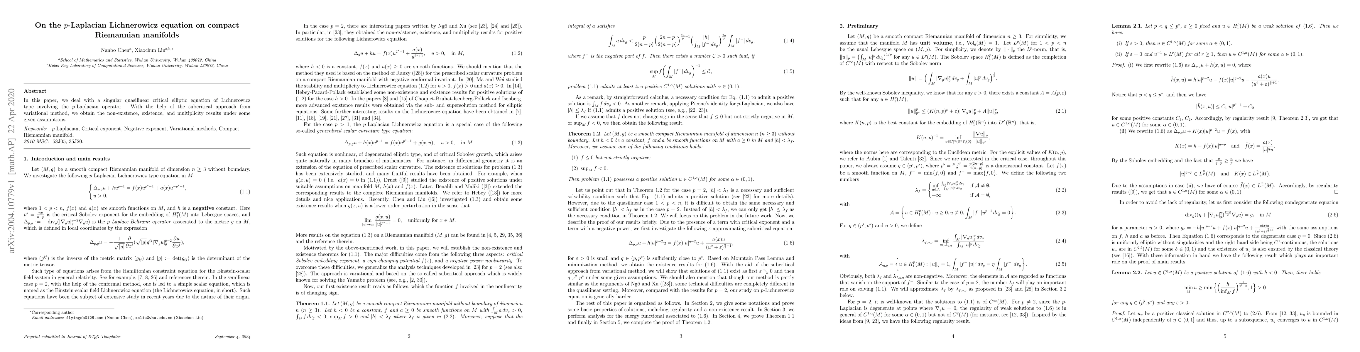 In this paper, we deal with a singular quasilinear critical elliptic equation of Lichnerowicz type involving the p-Laplacian operator. With the help of the subcritical approach from variational method, we obtain the non-existence, existence, and multiplicity results under some given assumptions.