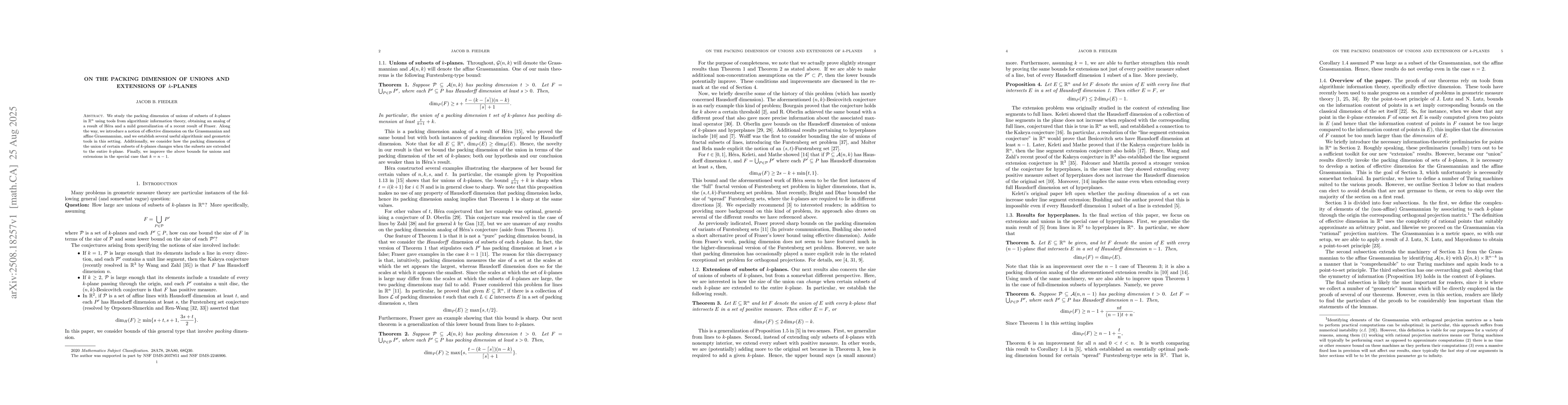 We study the packing dimension of unions of subsets of $k$-planes in $\mathbb{R}^n$ using tools from algorithmic information theory, obtaining an analog of a result of H\'era and a mild generalization of a recent result of Fraser. Along the way, we introduce a notion of effective dimension on the Grassmannian and affine Grassmannian, and we establish several useful algorithmic and geometric tools in this setting. Additionally, we consider how the packing dimension of the union of certain subsets of $k$-planes changes when the subsets are extended to the entire $k$-plane. Finally, we improve the above bounds for unions and extensions in the special case that $k=n-1$.
