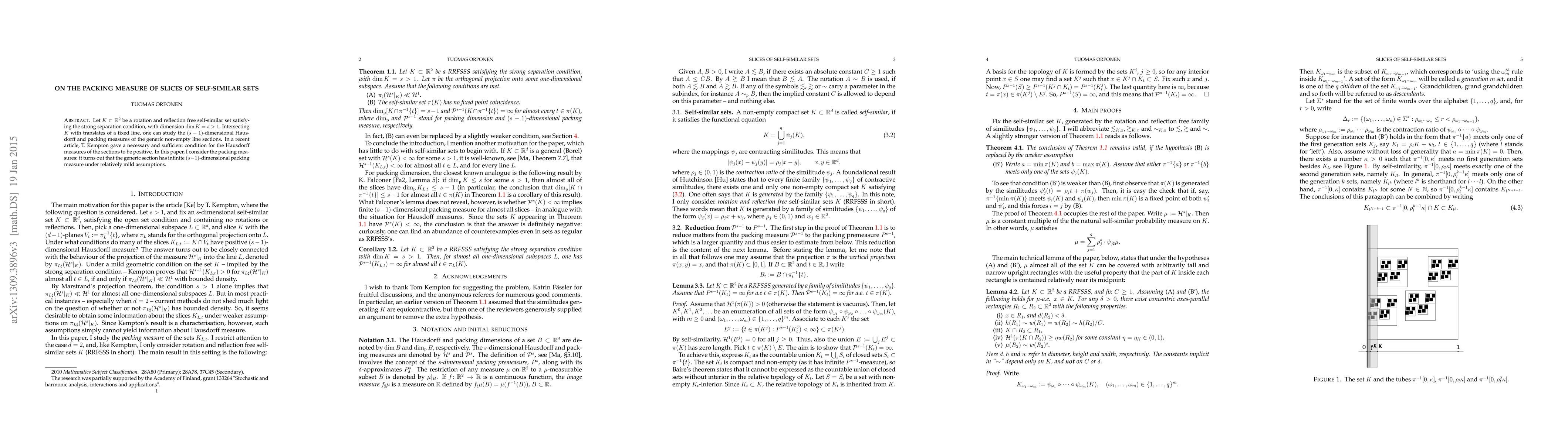 This paper investigates the packing measures of line sections of a self-similar set in $\mathbb{R}^{2}$, showing that under mild conditions, the generic non-empty section has an infinite $(s - 1)$-dimensional packing measure, extending previous results on Hausdorff measures.